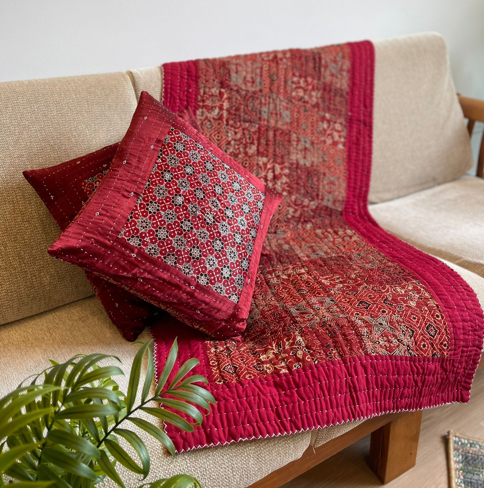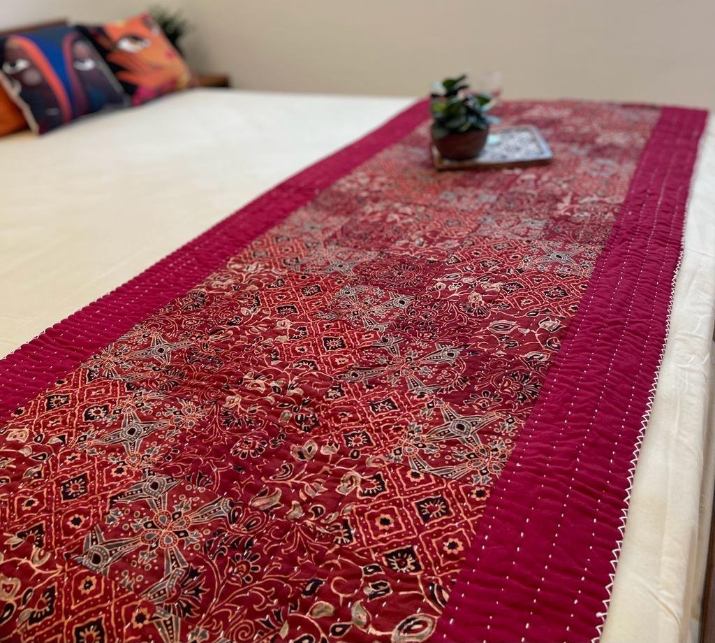 Material: Cotton Ajrakh kanthawork reversible runners.