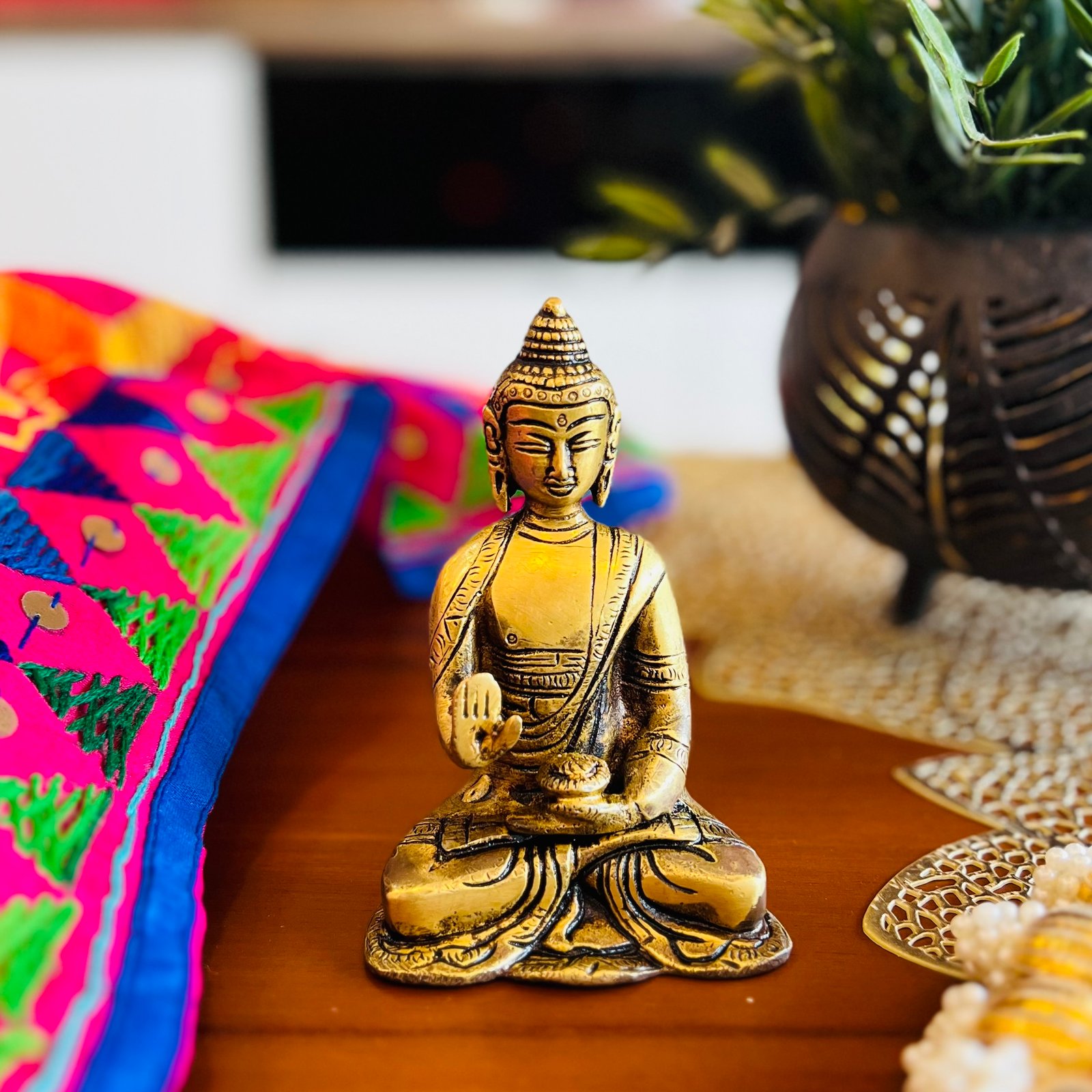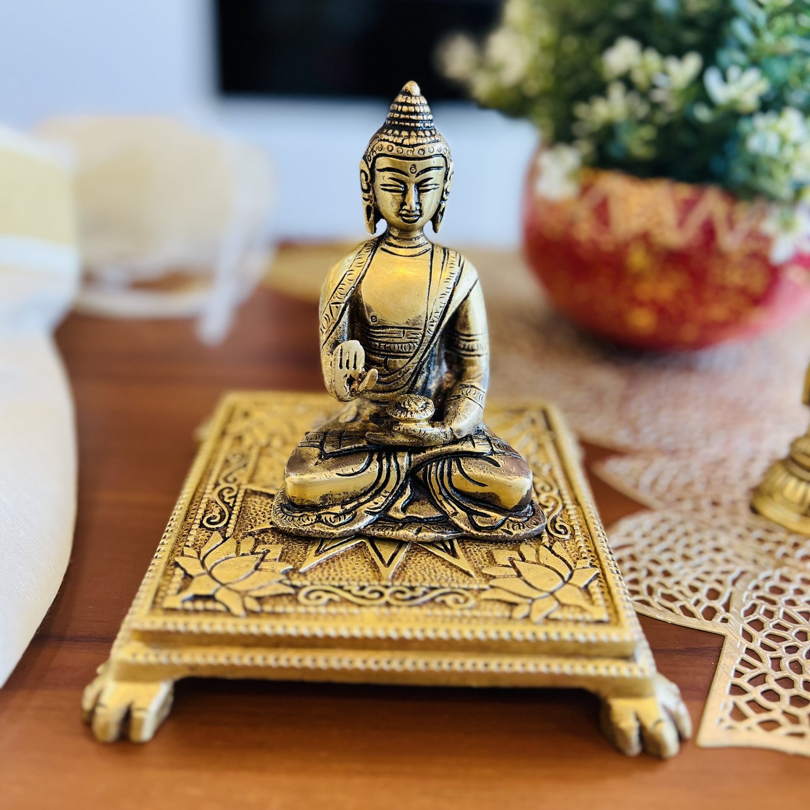 Includes: Buddha Idol Only, Does not include the mat, the brass chowki and other photo accessories.