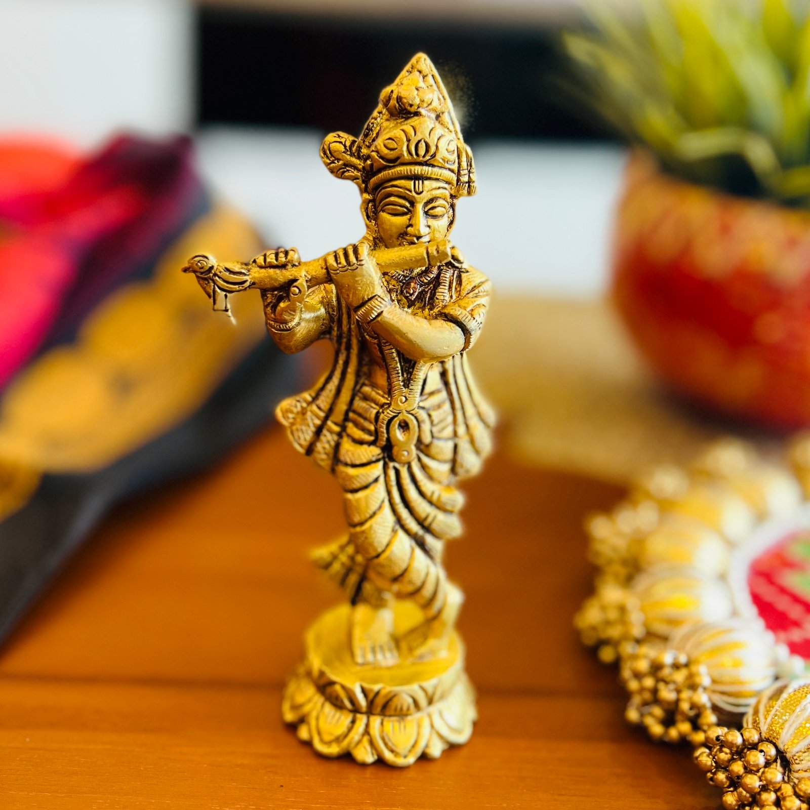 Includes: One Krishna idol Only, Does not include the other photo accessories like chowki etc.