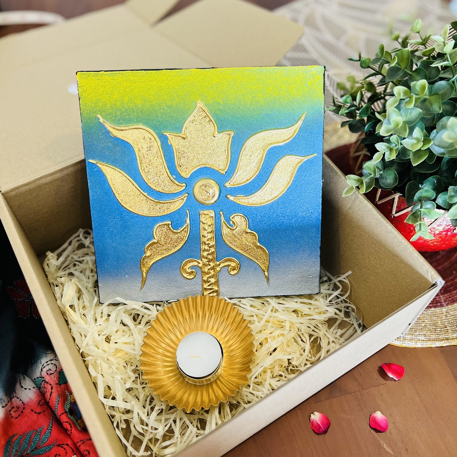 Canvas Painting & Diya Gift Set (D8)