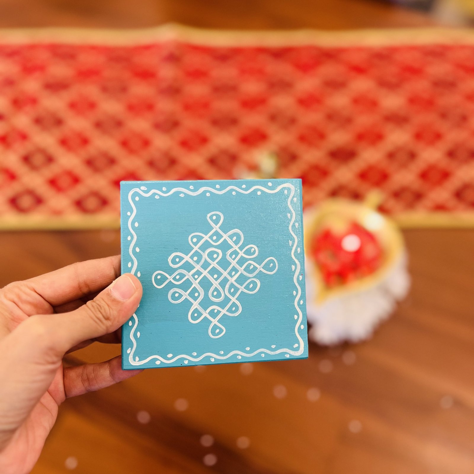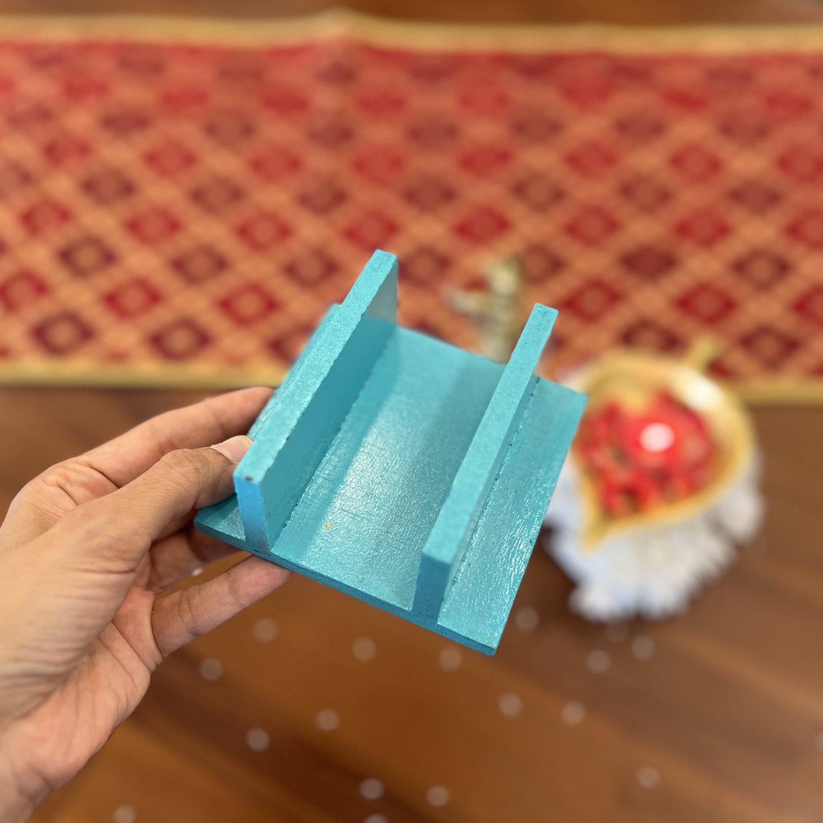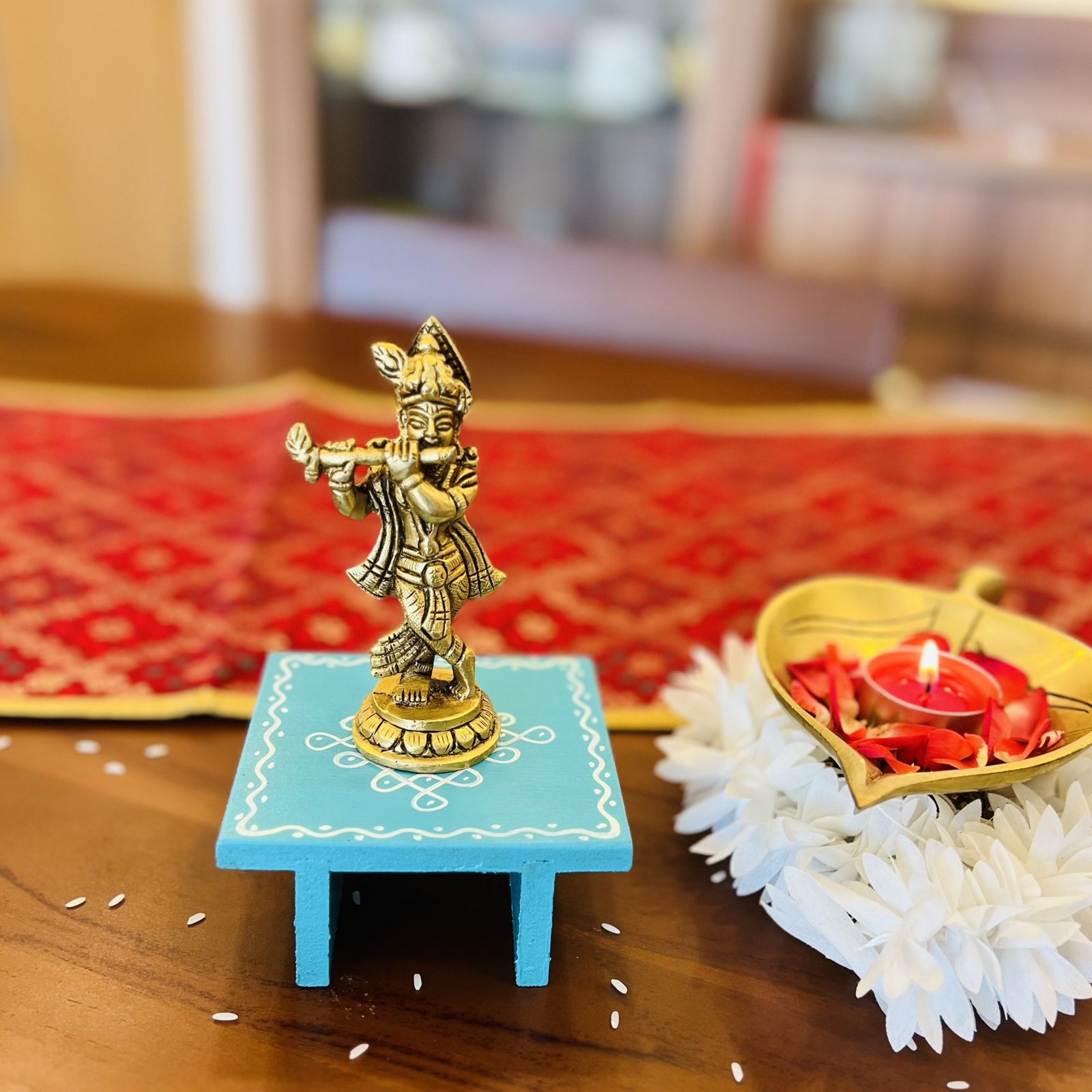 - 1 hand painted wooden chowki/manai – 9.5×9.5 cm (3.5 cm height)