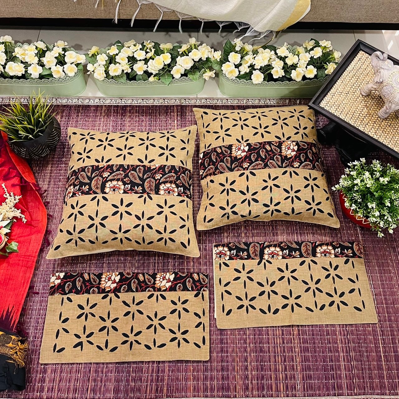 Cotton Appliqué with Kalamkari Design (Set of 4, Brown)