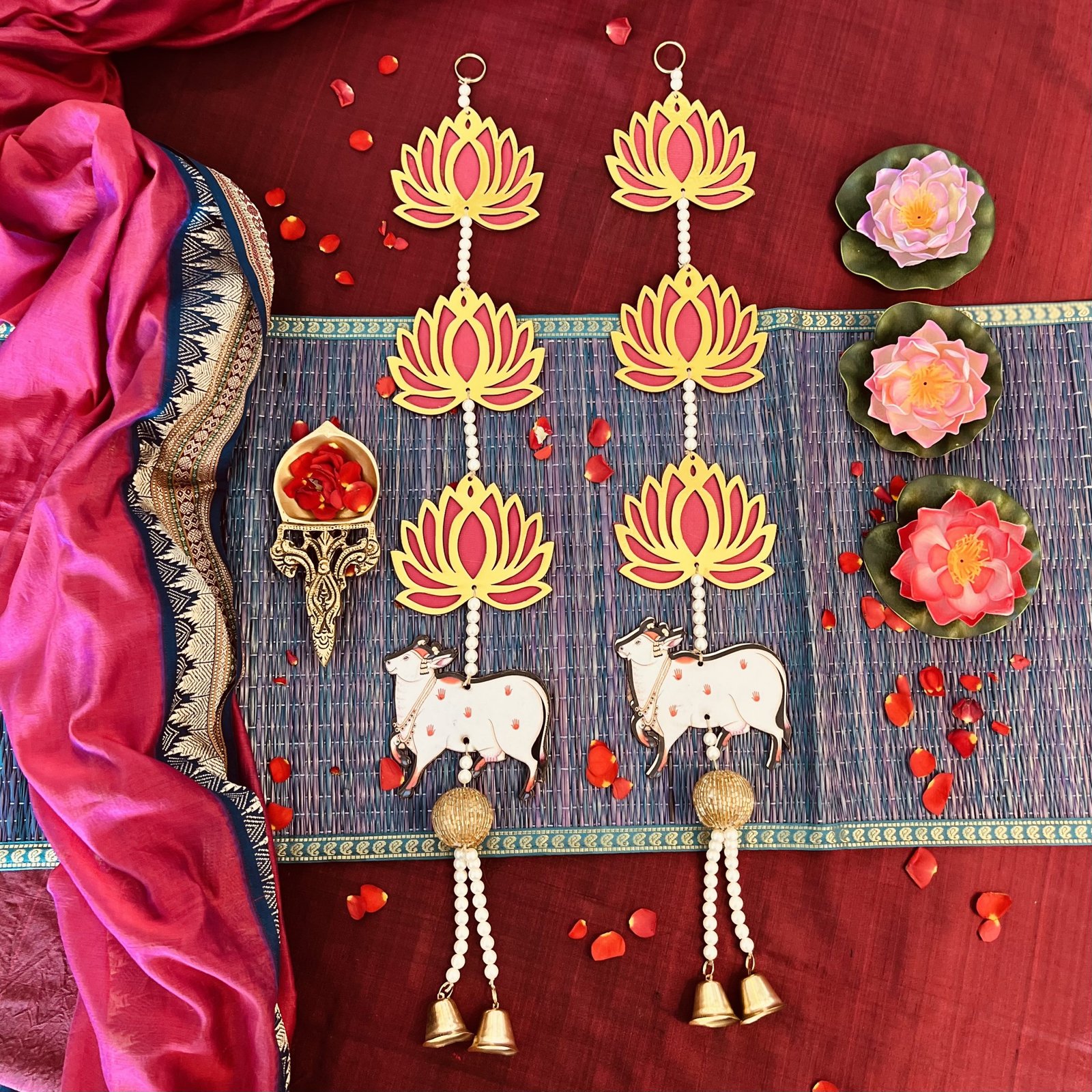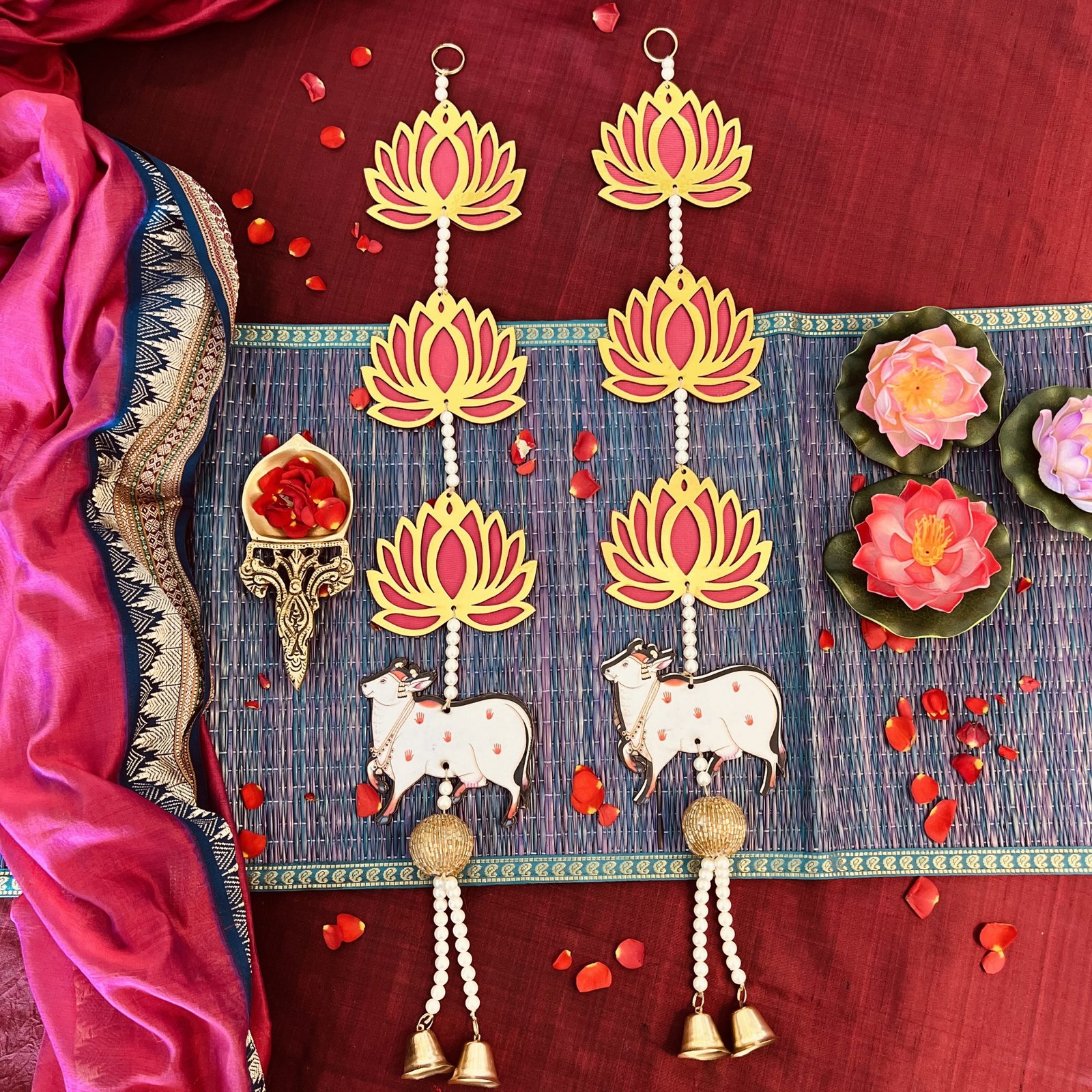 Decorative Cow, Lotus and Bell Hanging (Set of 2)