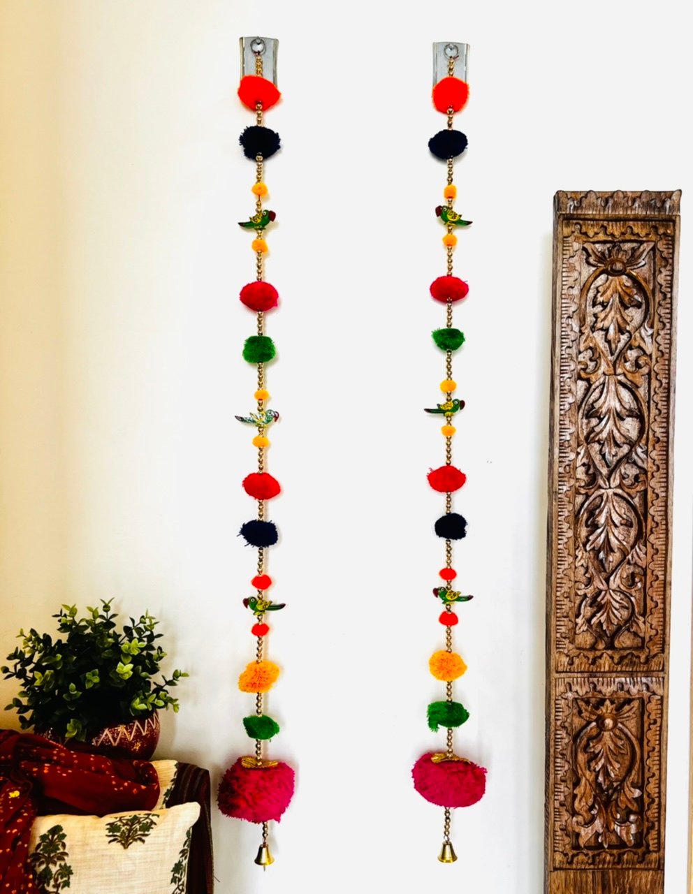Material:Wool yarn pom poms and wooden bird decoration