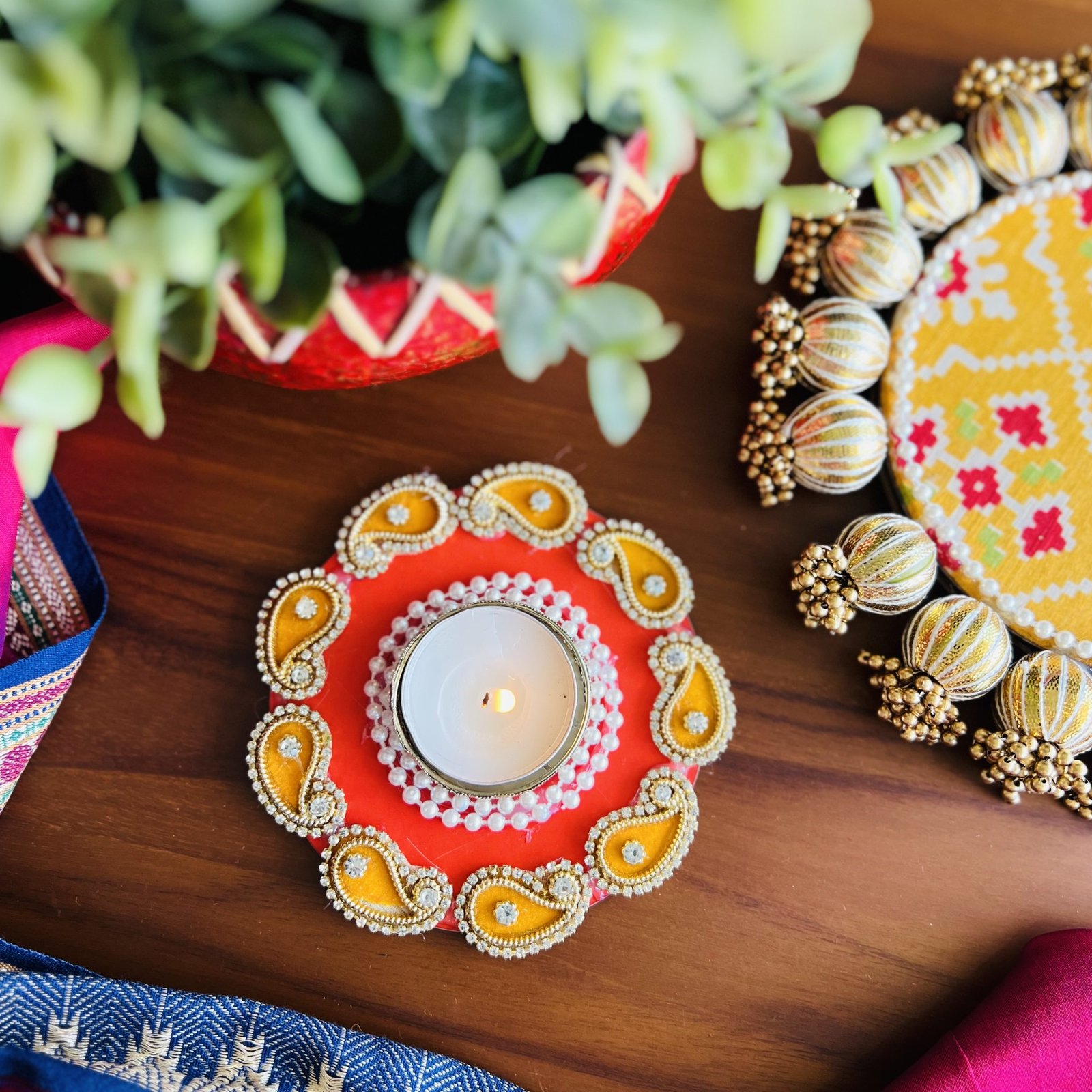 - 1 festive tealight holder – 12cm Diameter, color as per photo