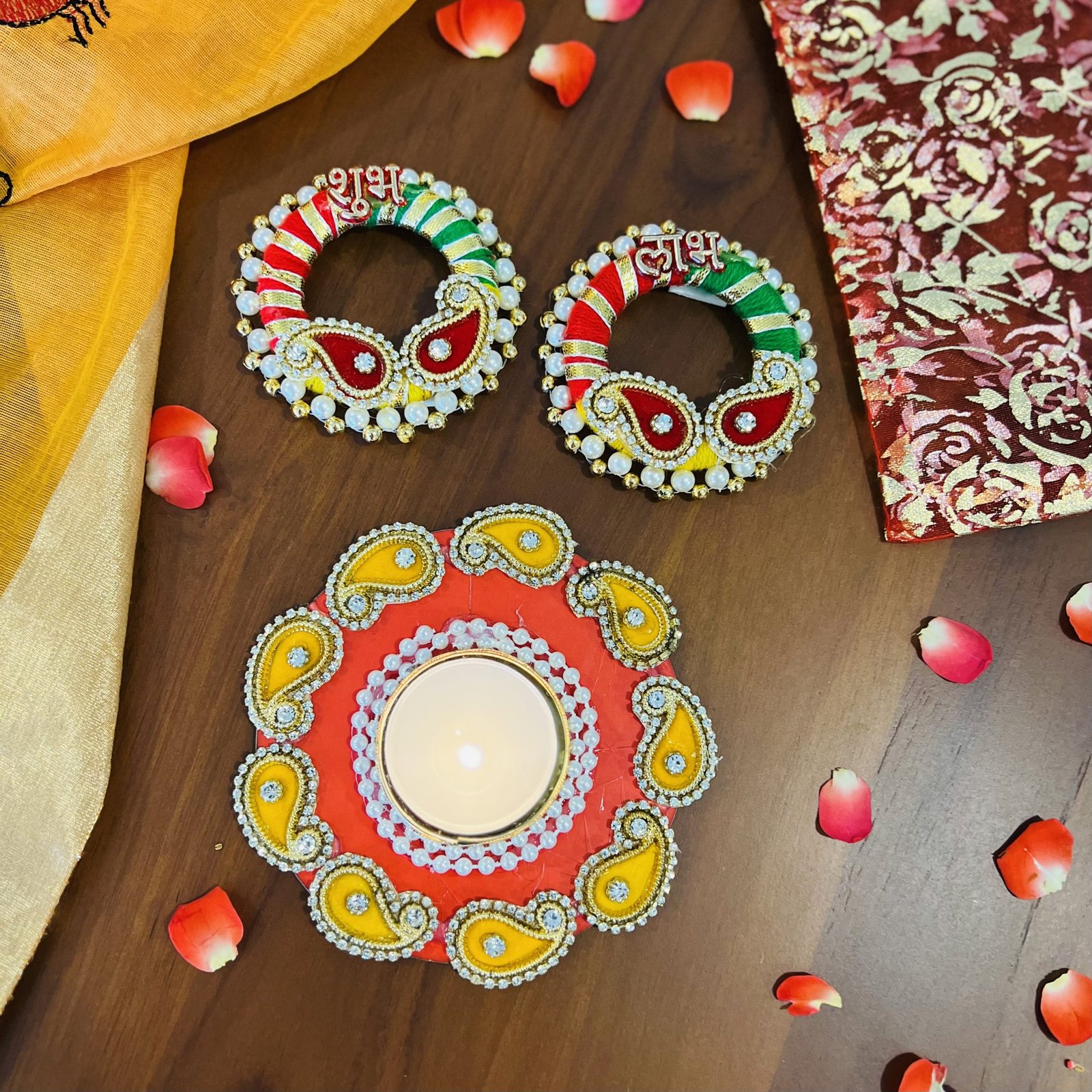 - 1 festive subh labh stickable on the wall or door – 6cm diameter