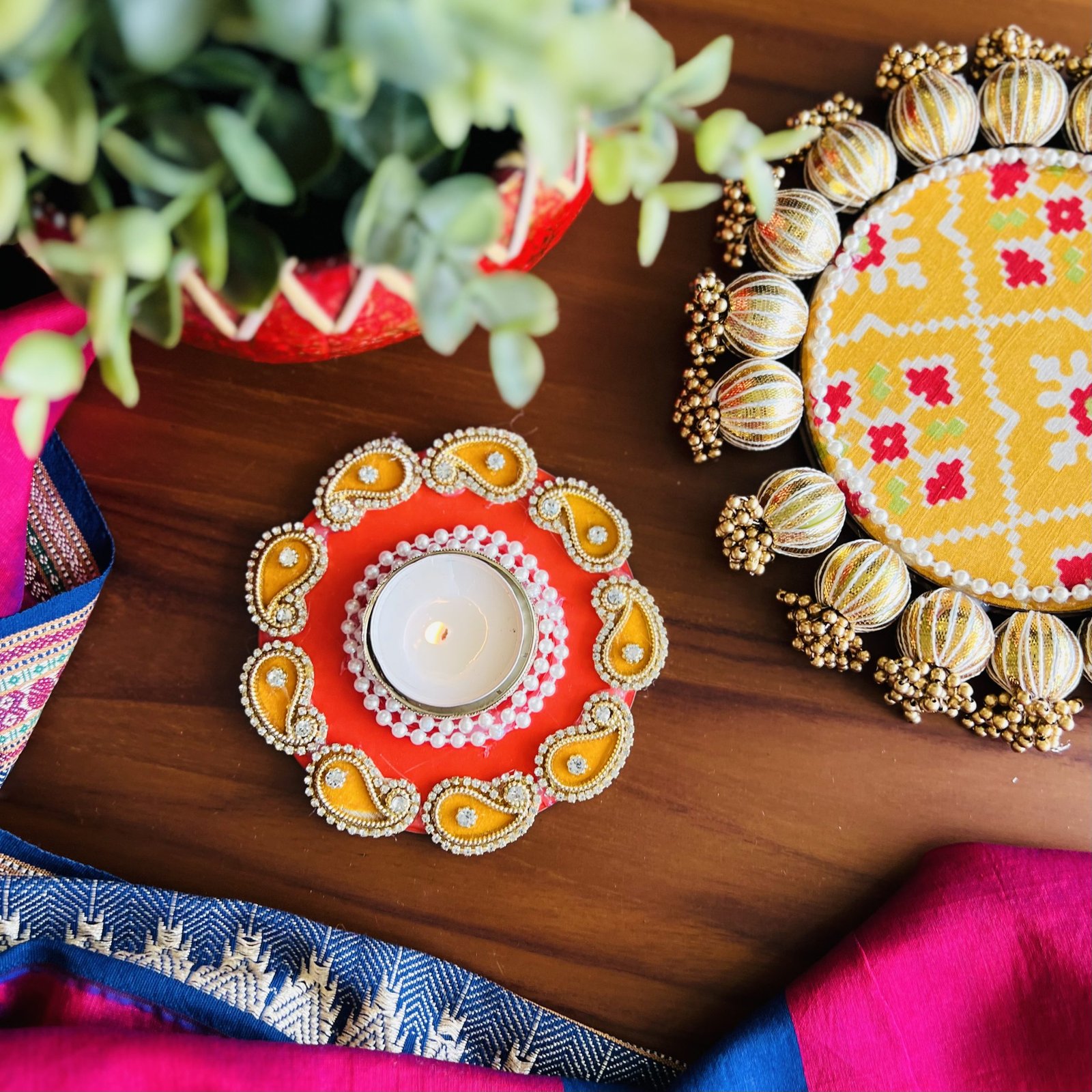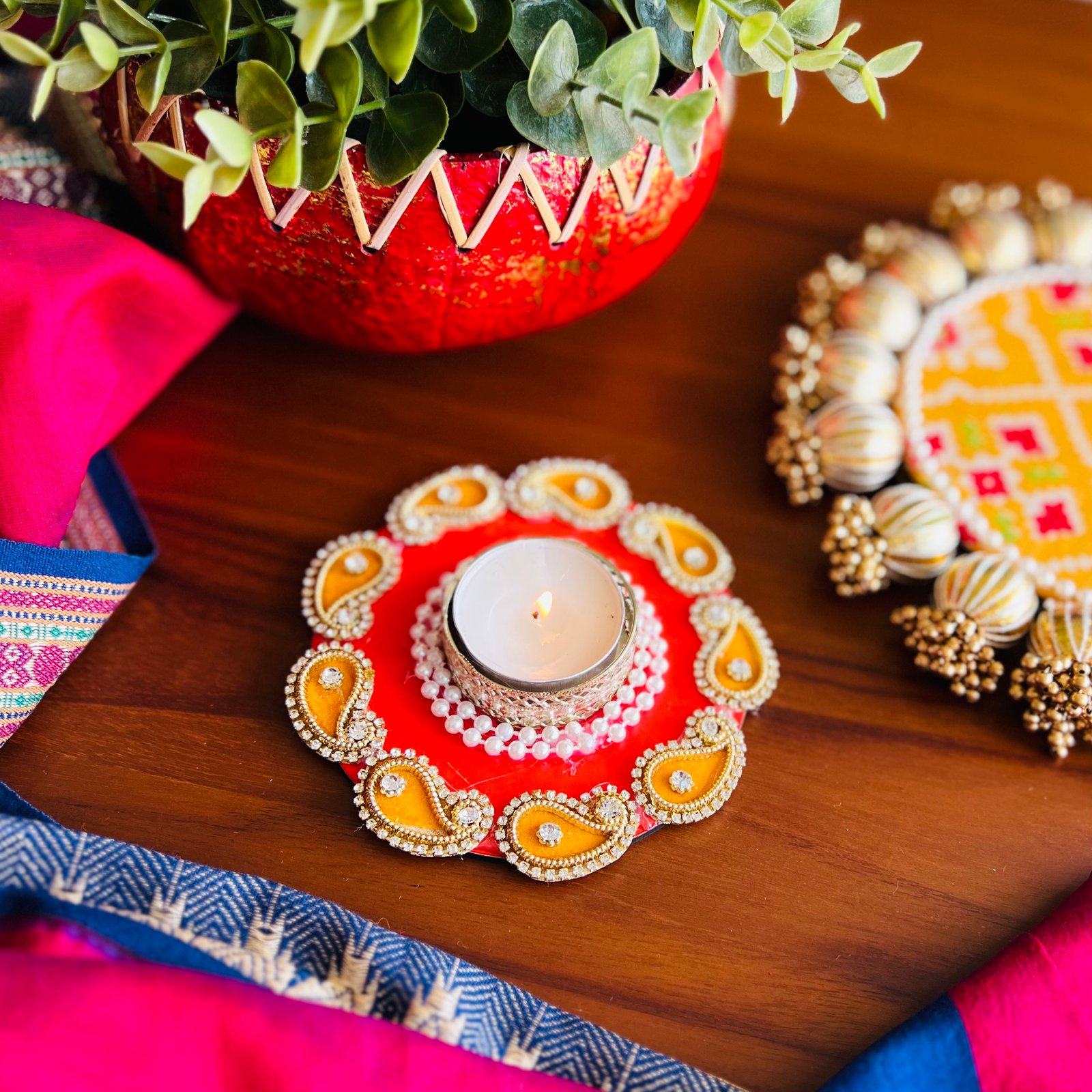 - 1 festive tealight holder – 12cm Diameter, color as per photo