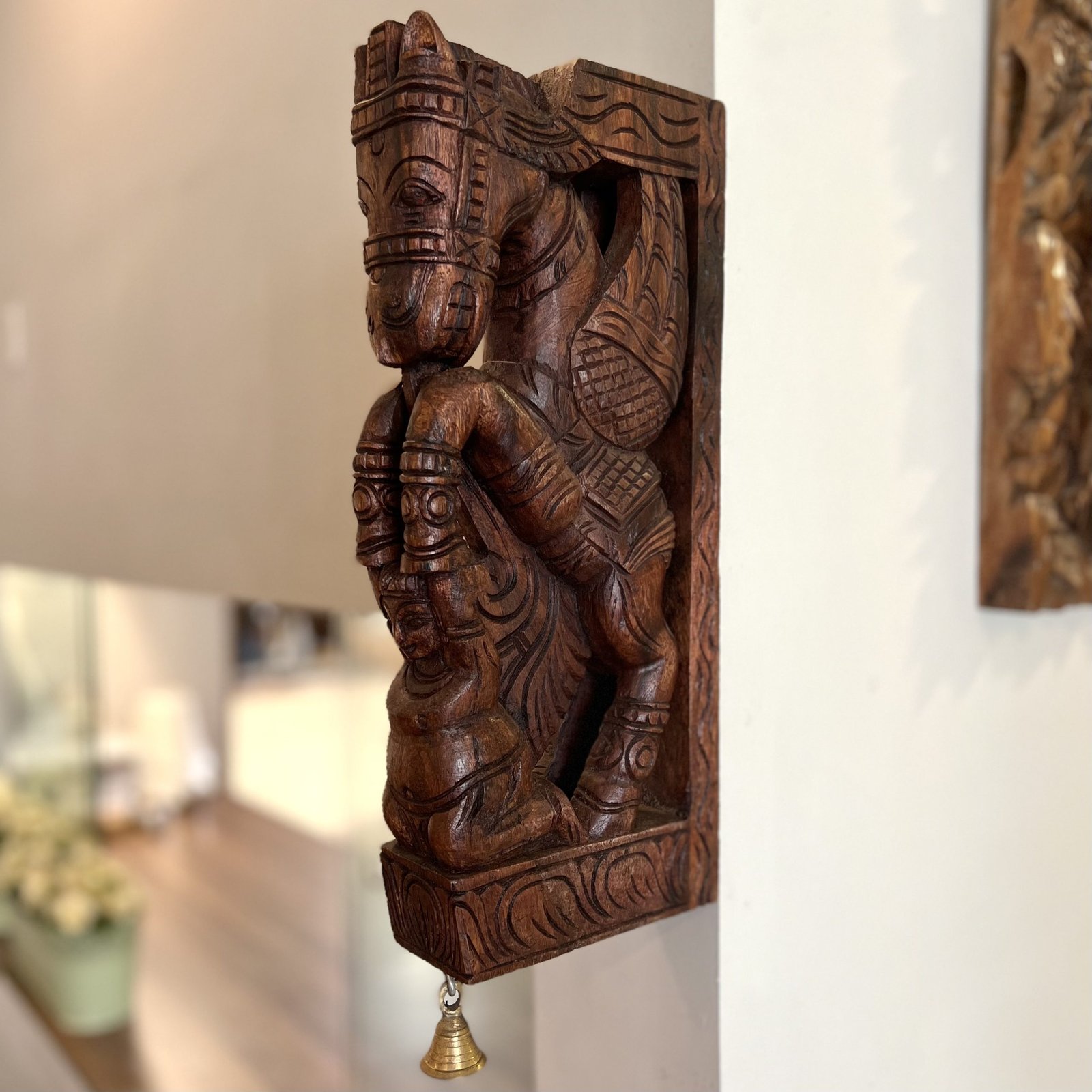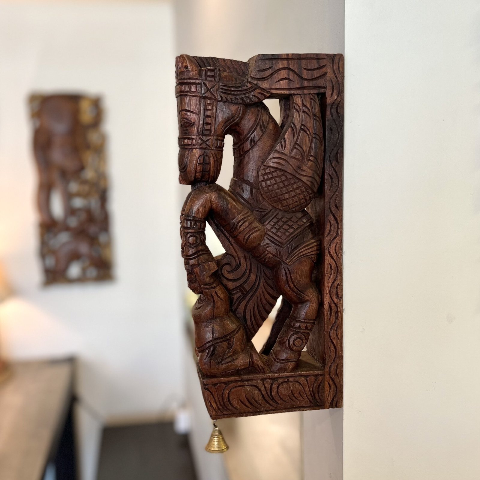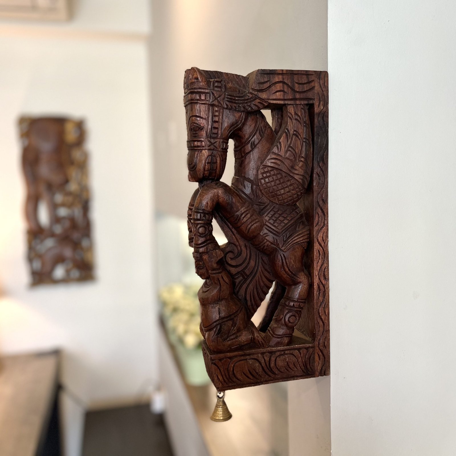Hand Carved Wooden Horse Wall Bracket (Brown, 36cm)
