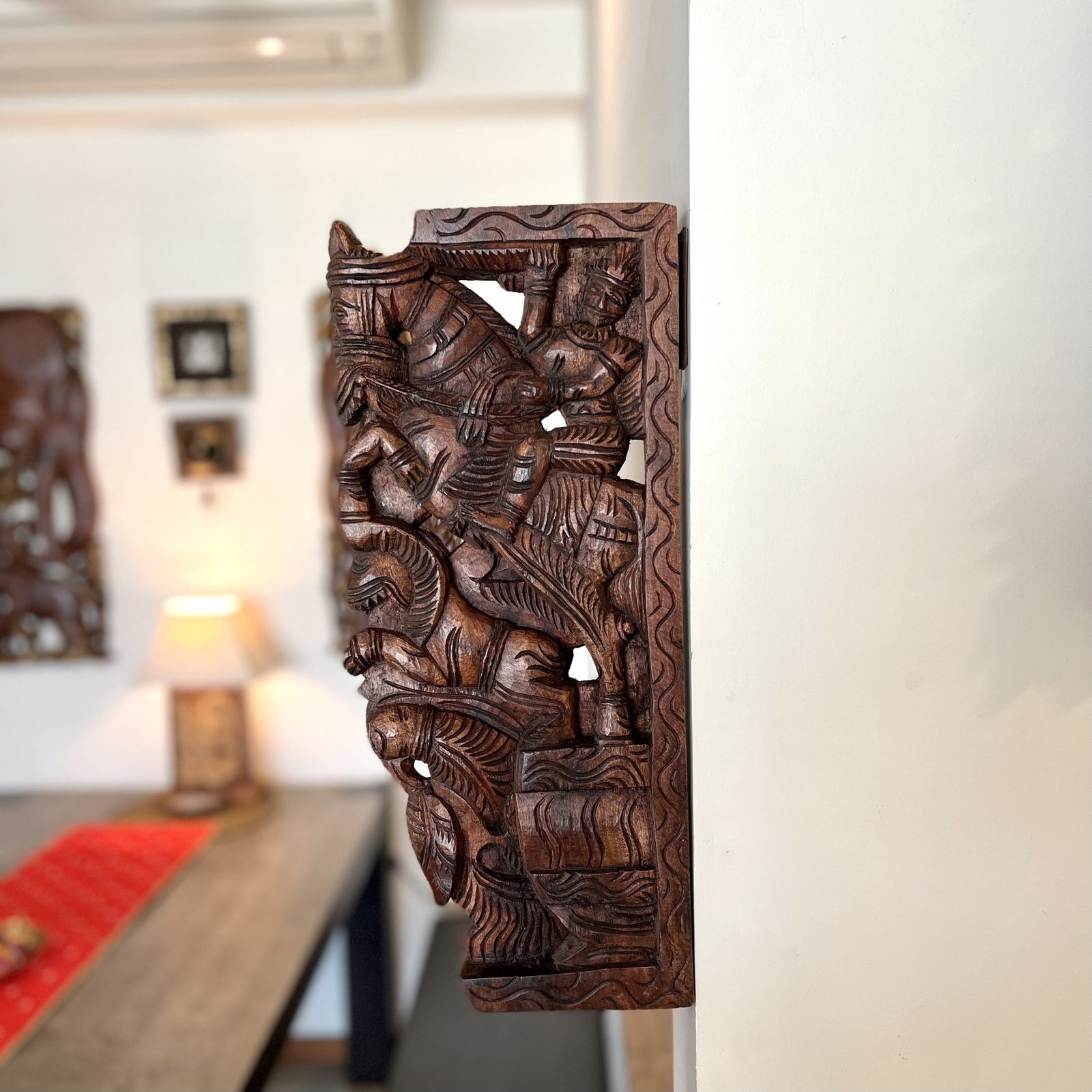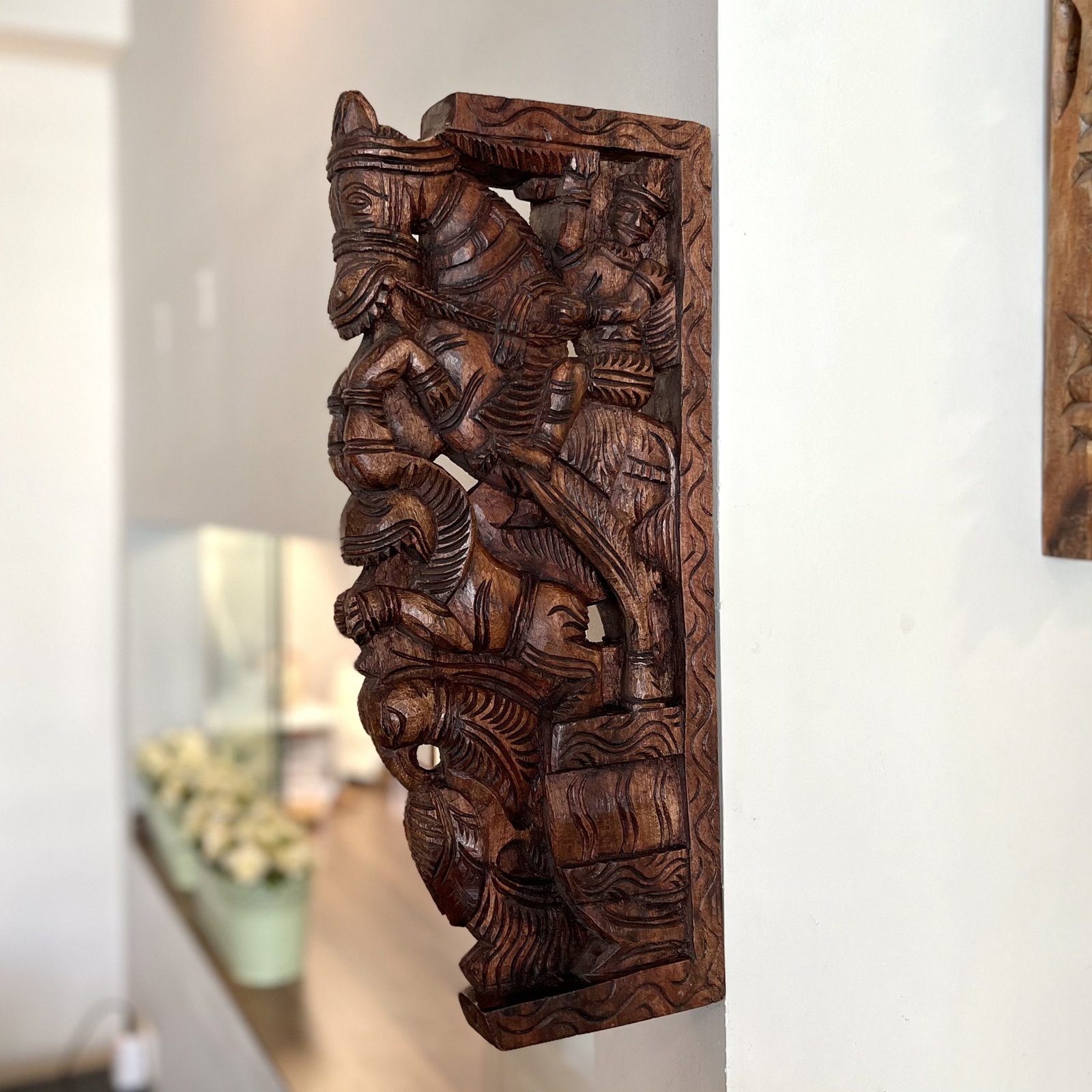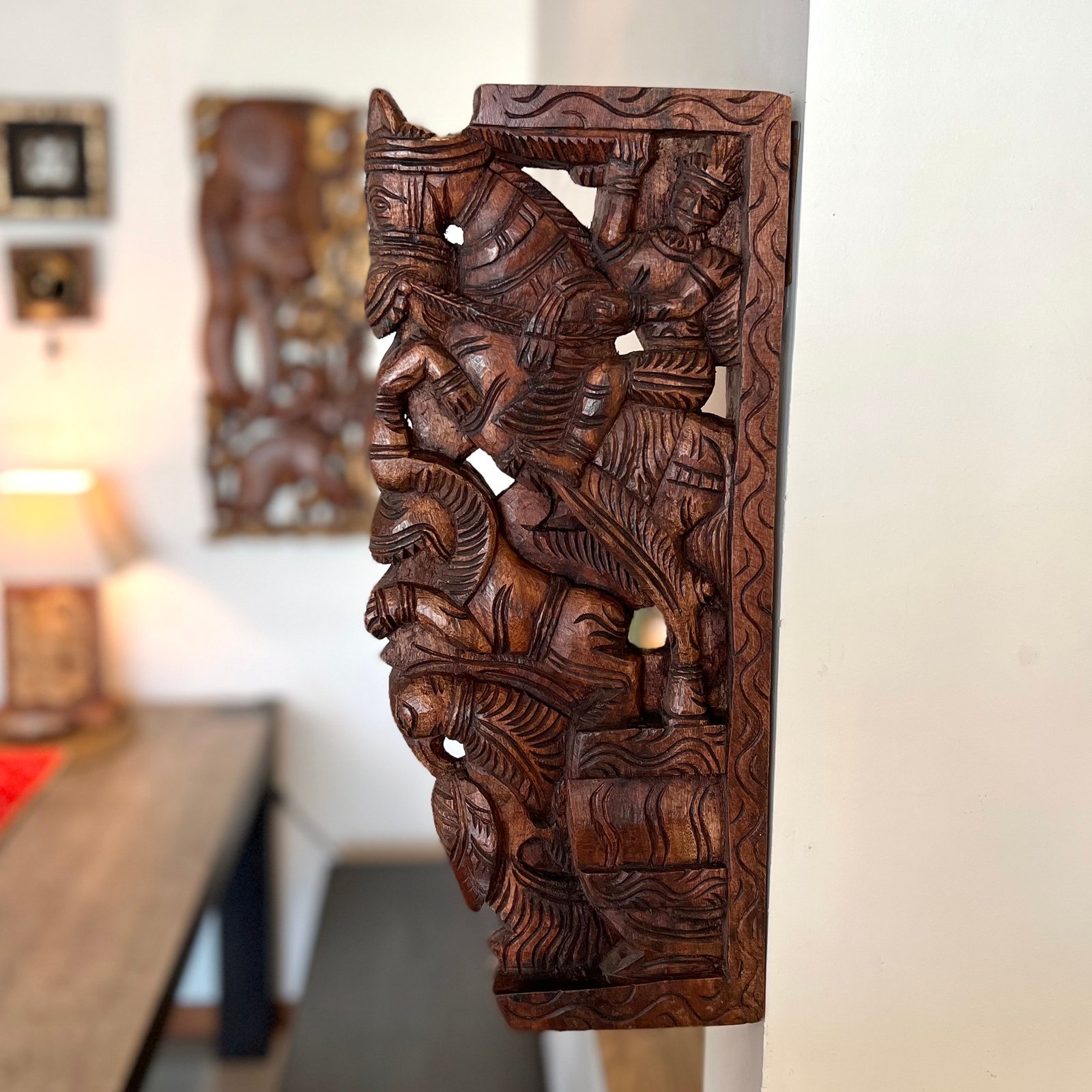 Hand Carved Wooden Horse Wall Bracket (Brown, 45cm)