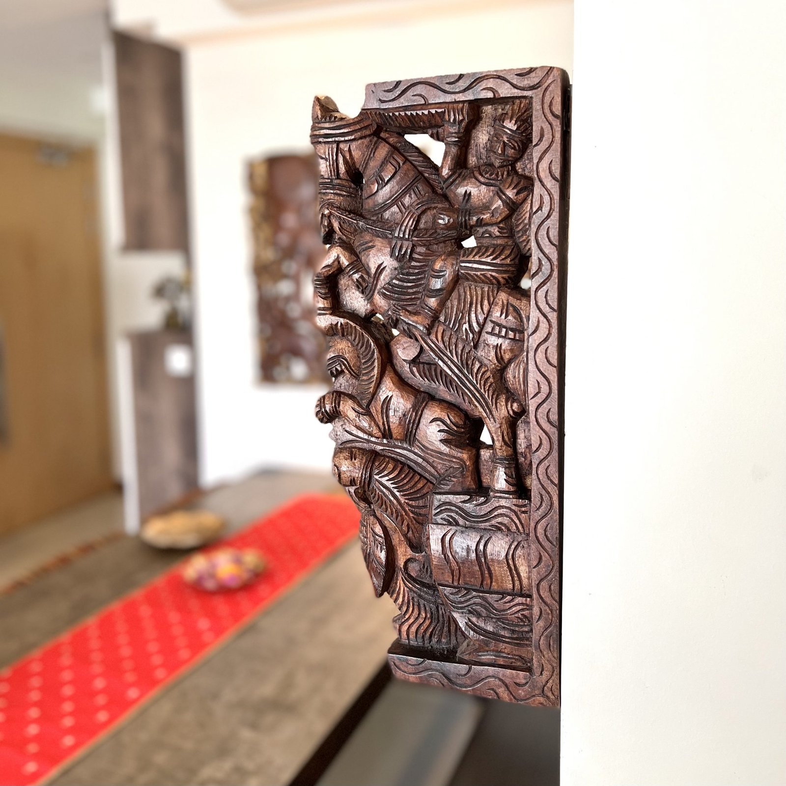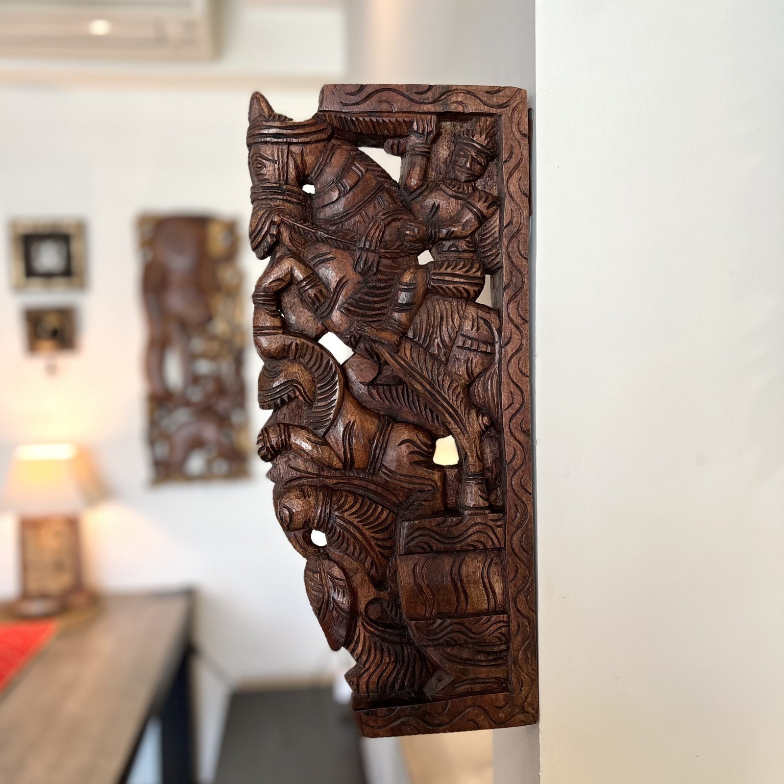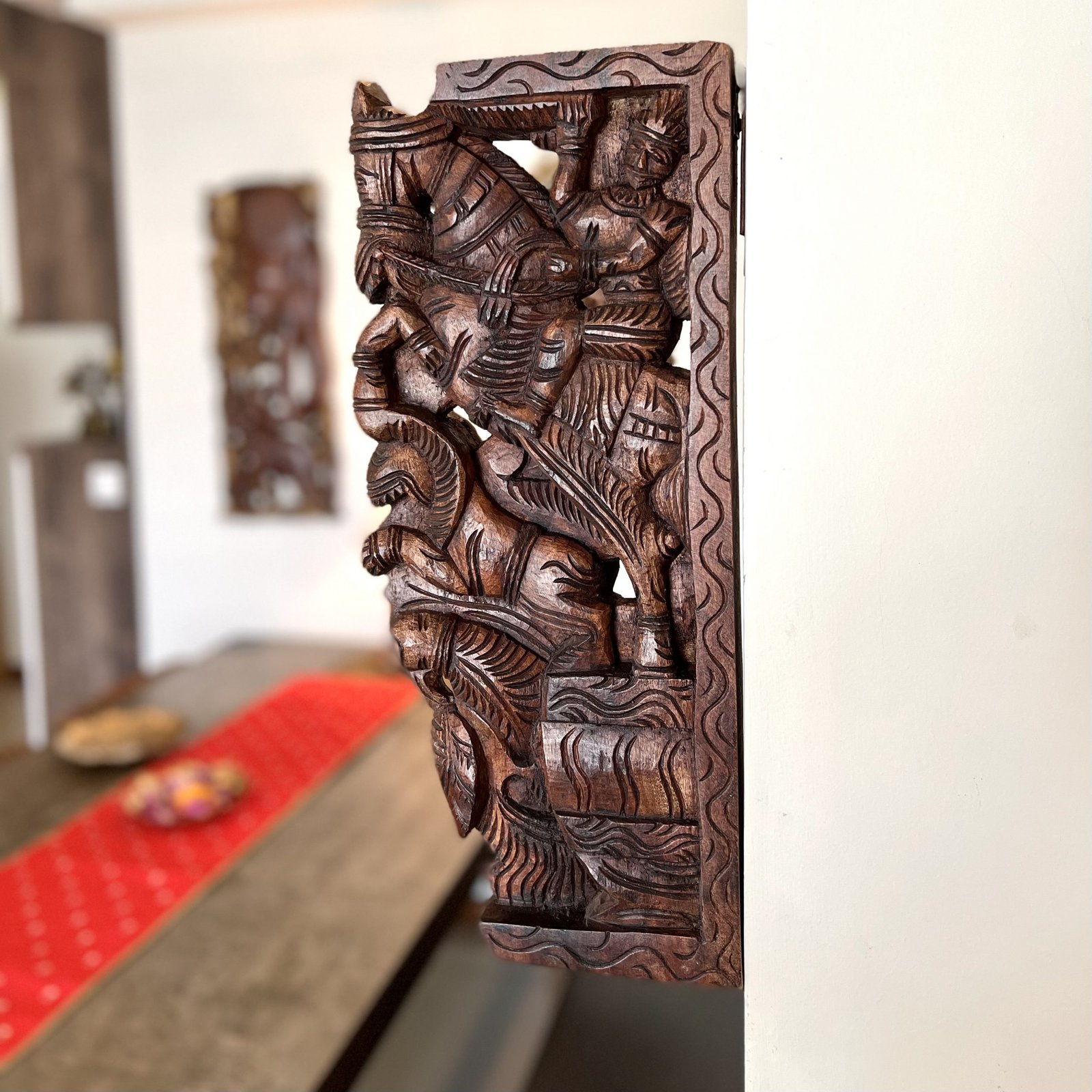 Hand Carved Wooden Horse Wall Bracket (Brown, 45cm)
