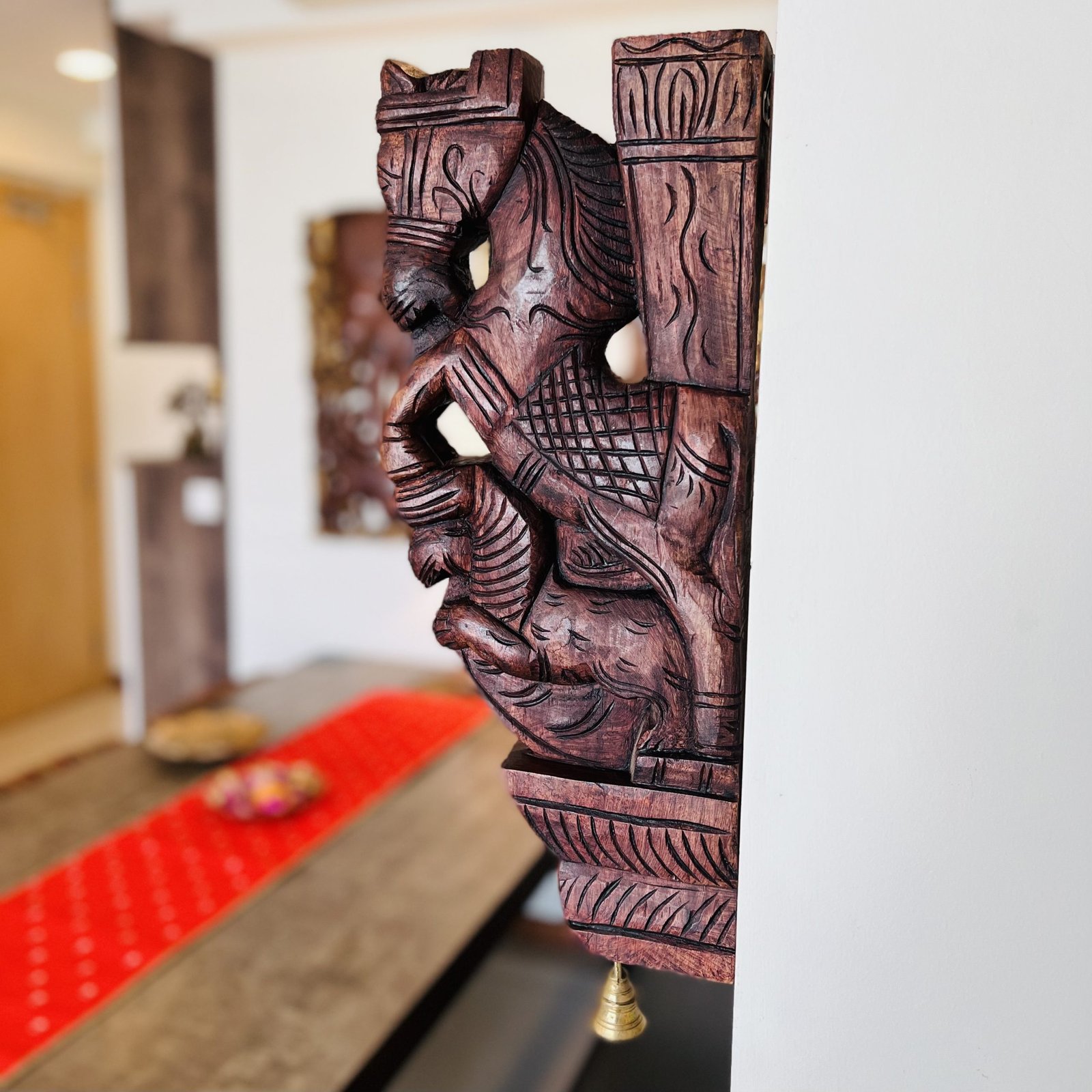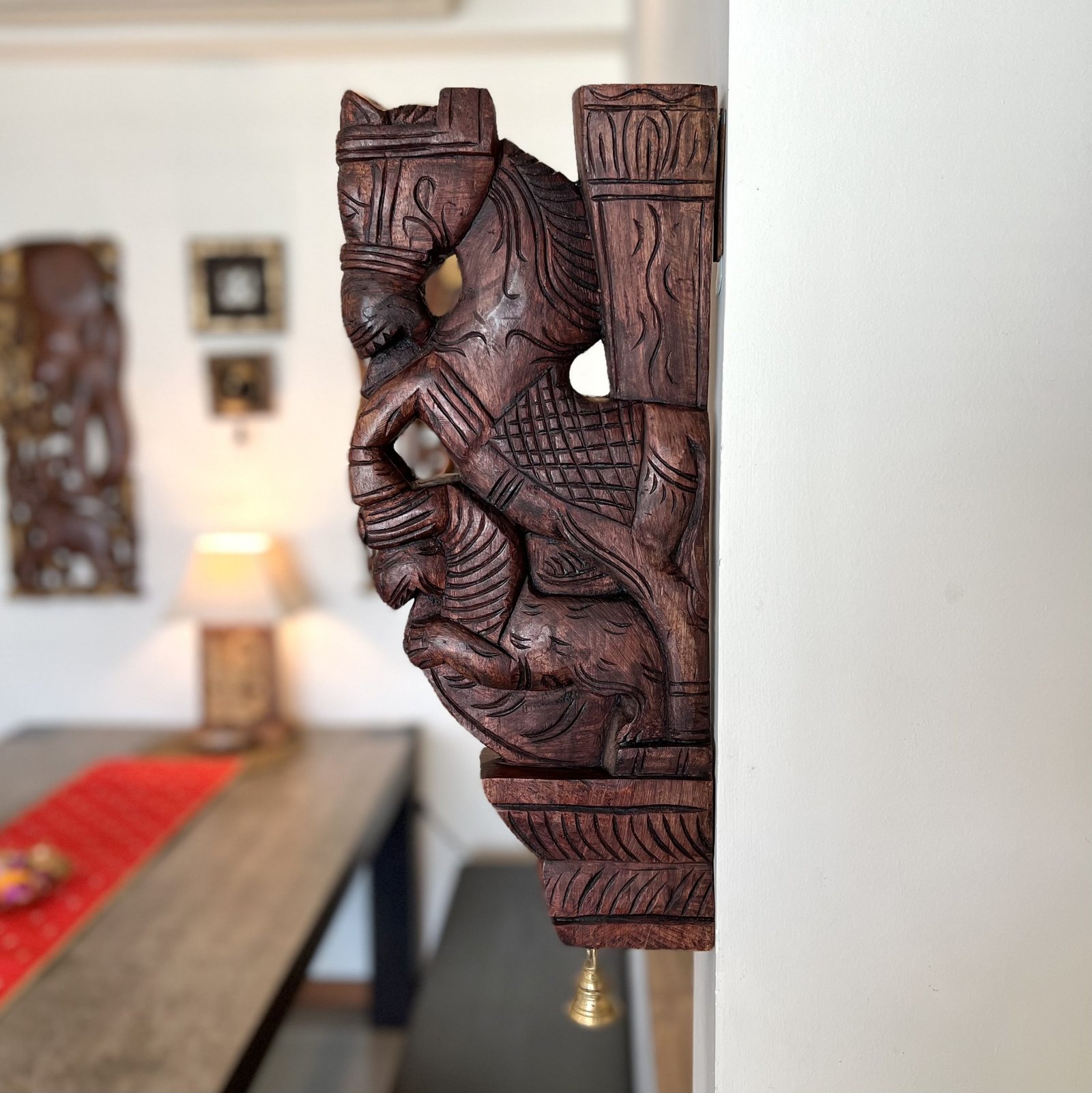 Hand Carved Wooden Horse Wall Bracket (Brown, 46cm)