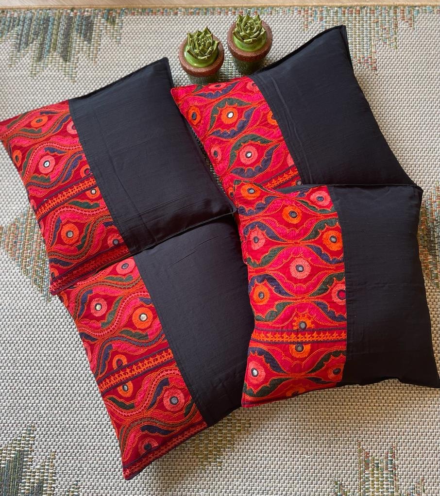 Hand Embroidered Cushion Covers (Set of 4, B1A)