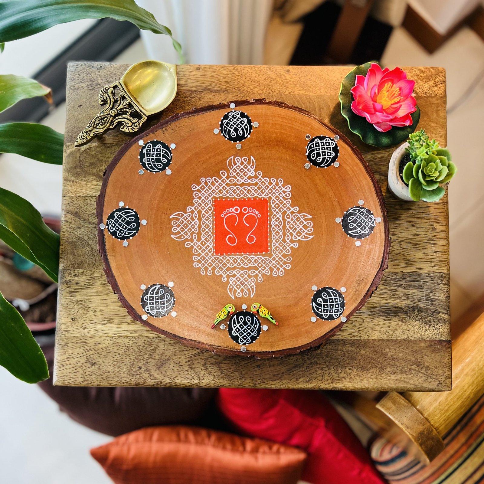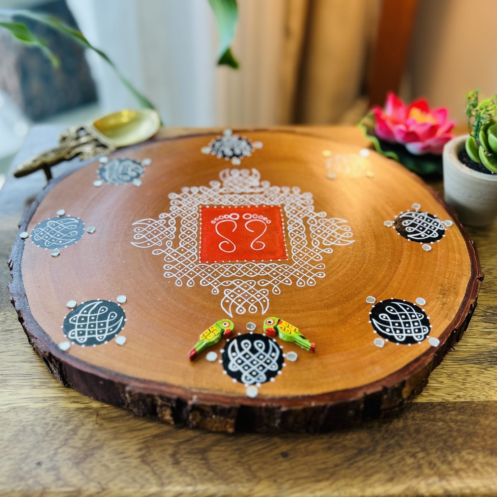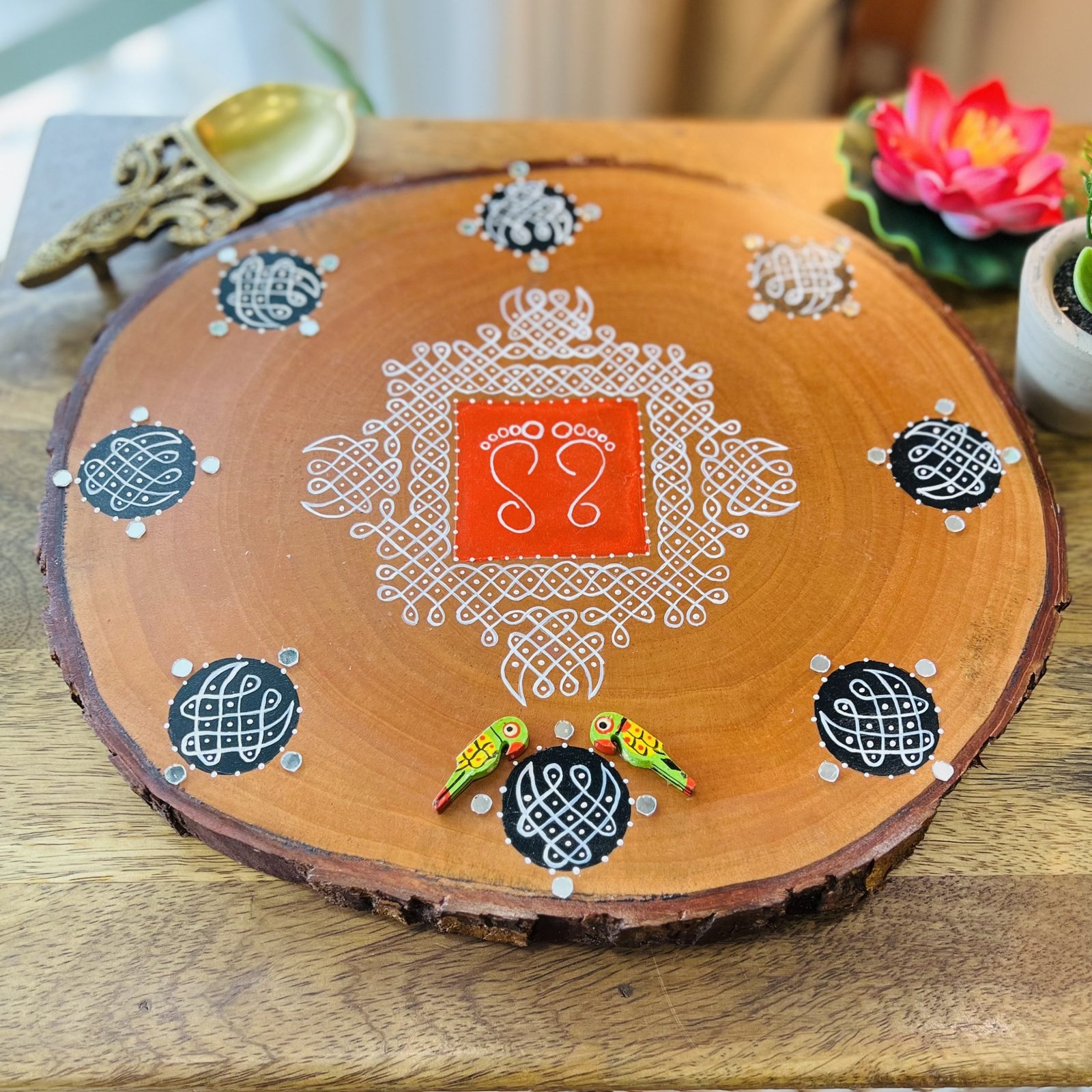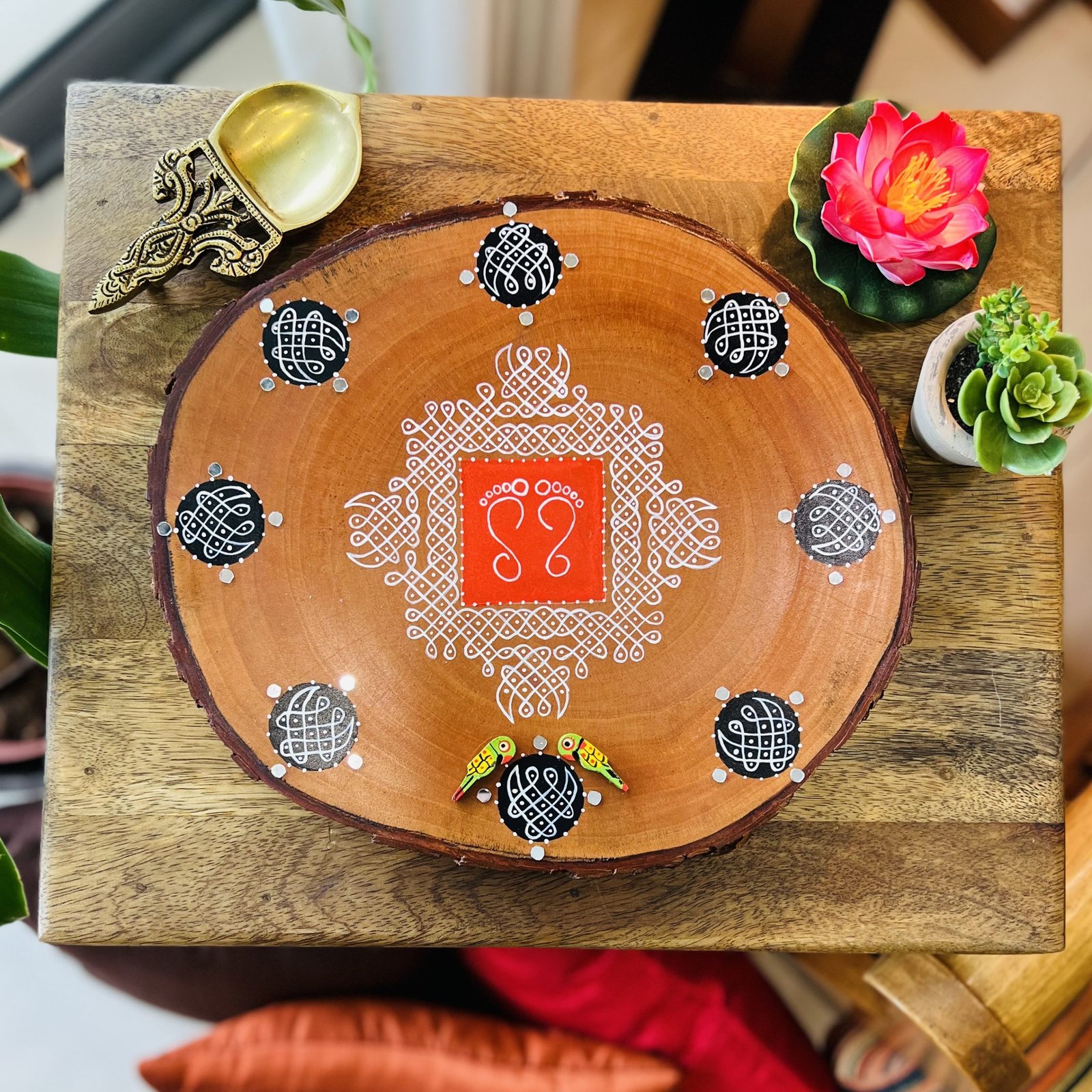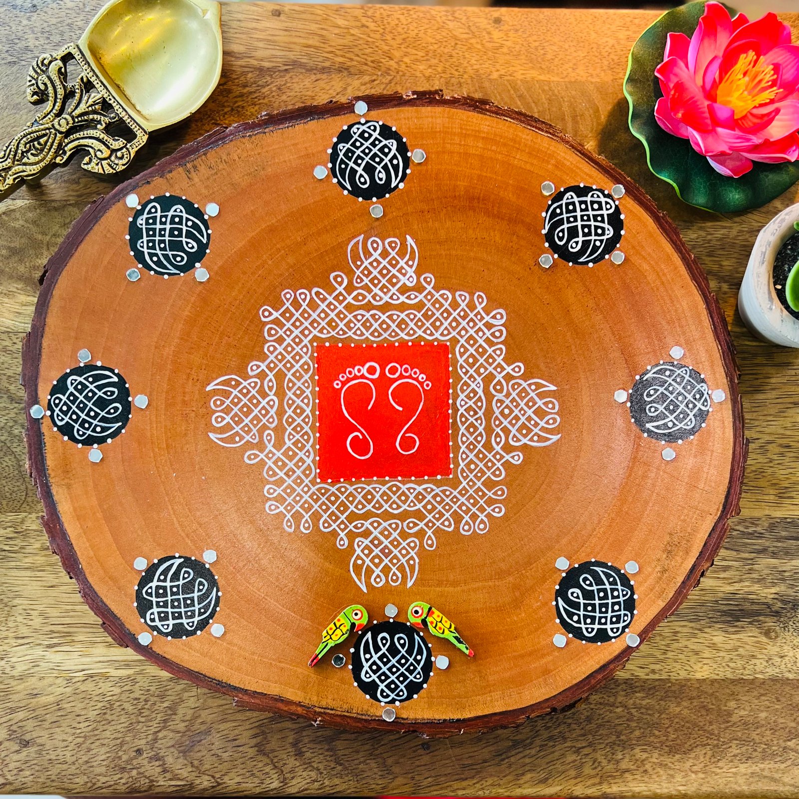 Hand Painted Teak Wood Bark Platter (Feet Design)