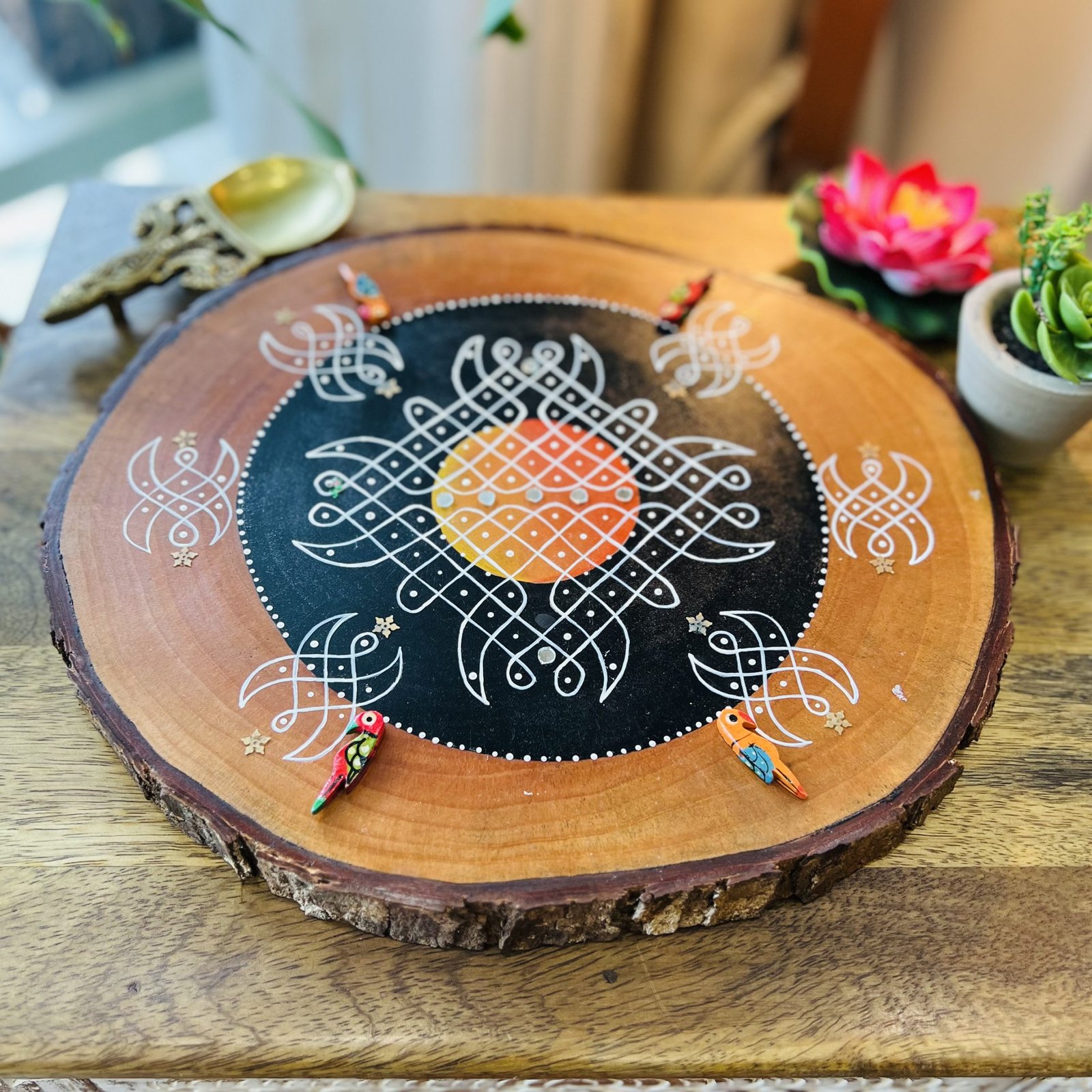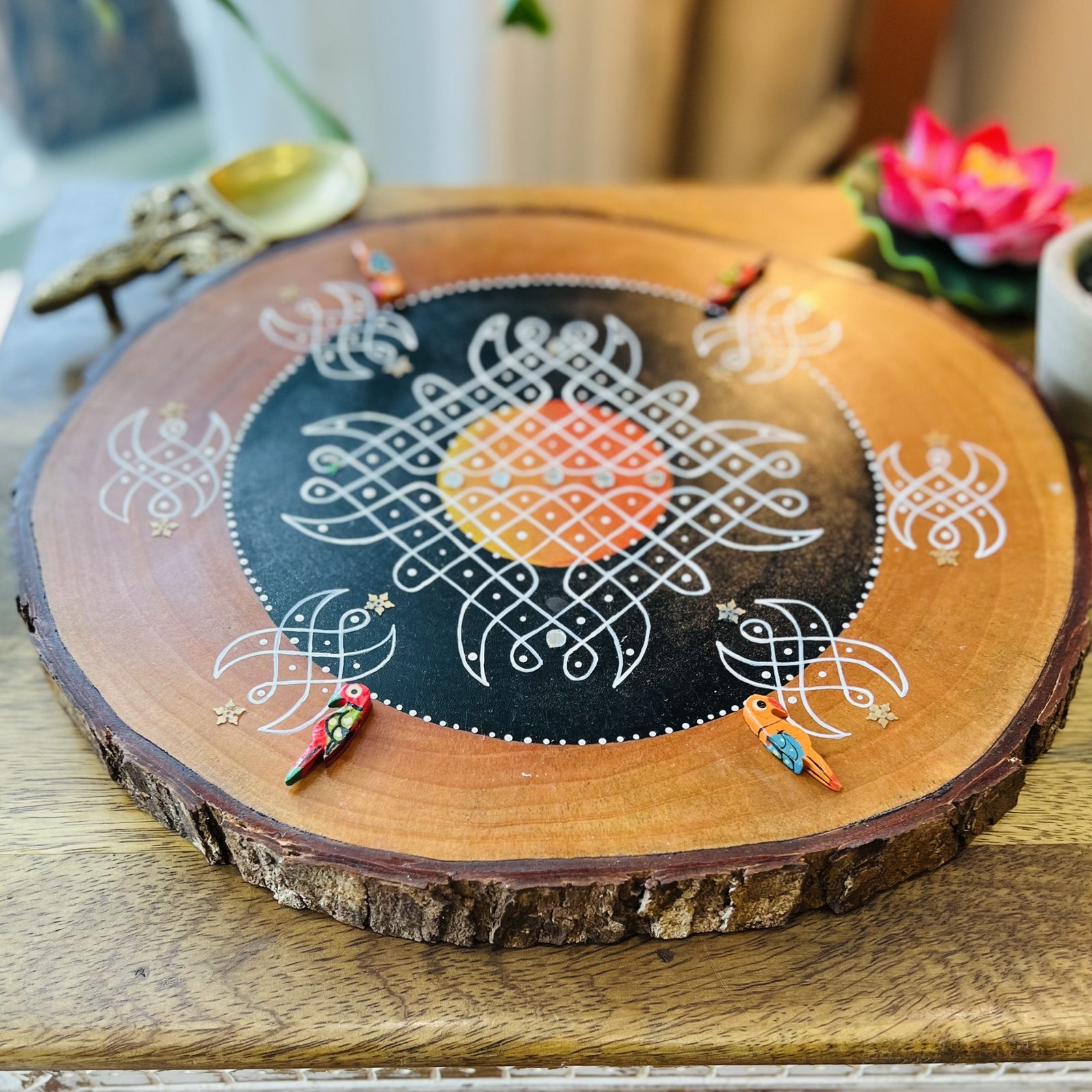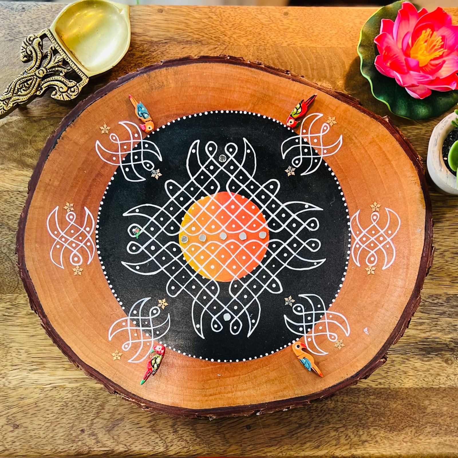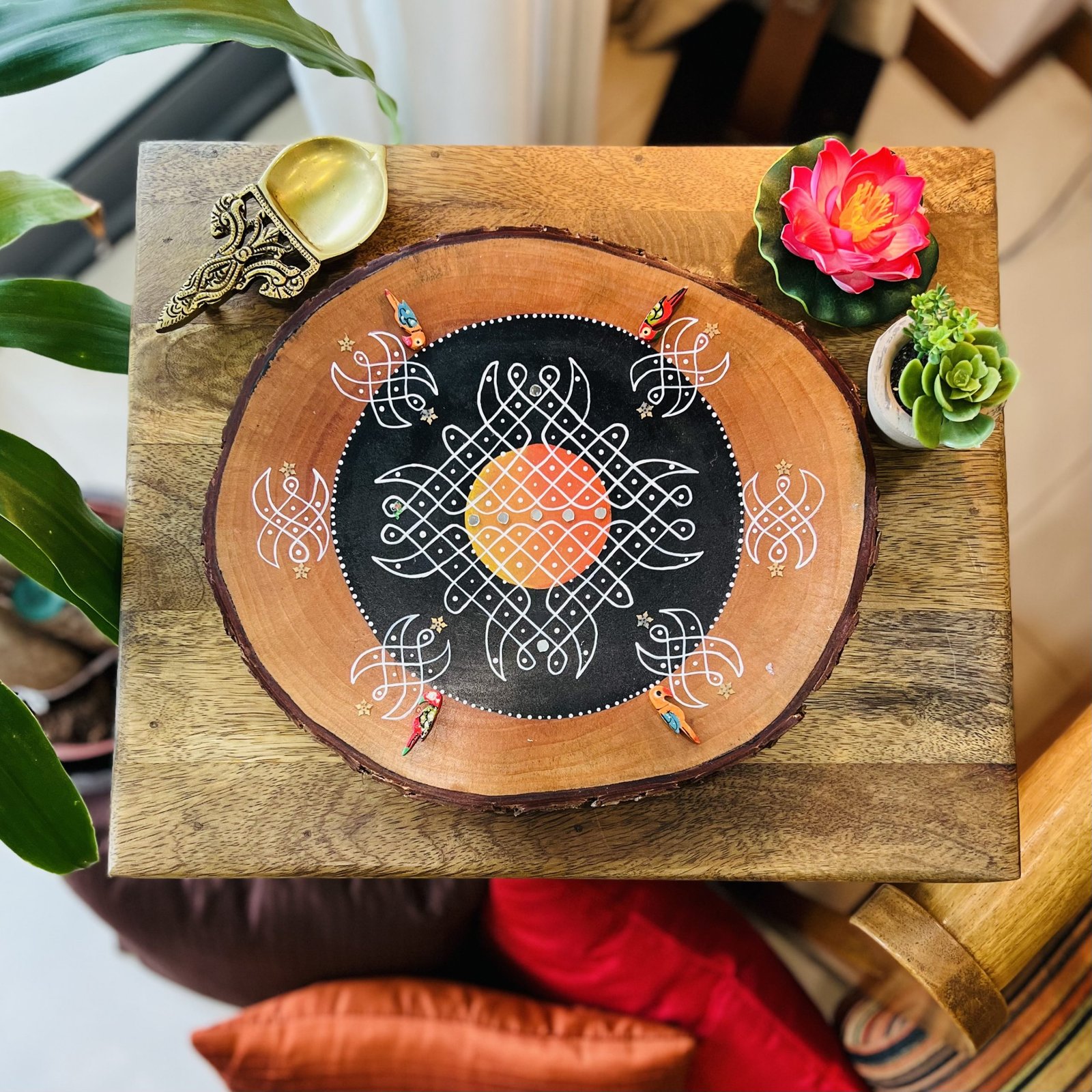 Hand Painted Teak Wood Bark Platter (Mirror Design)