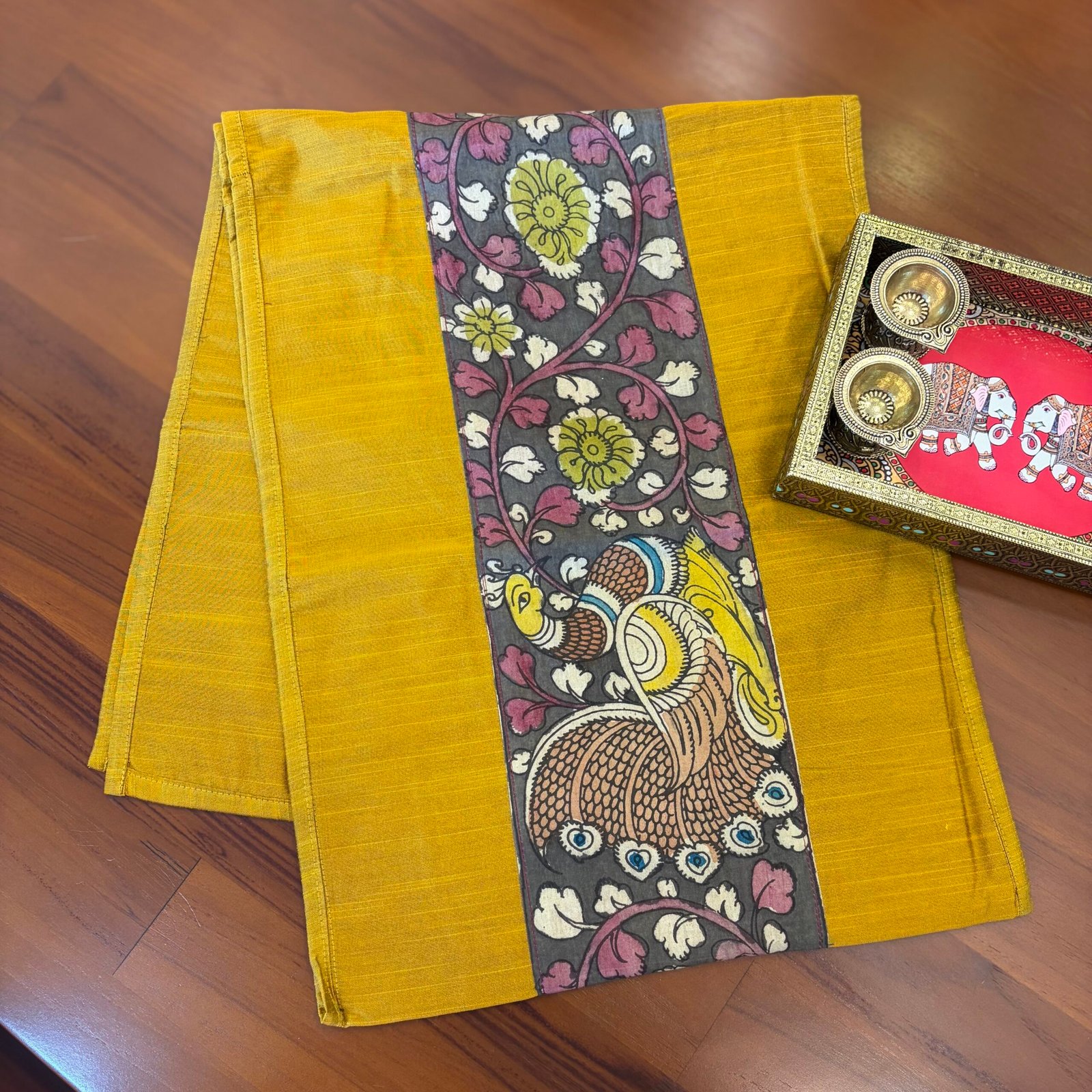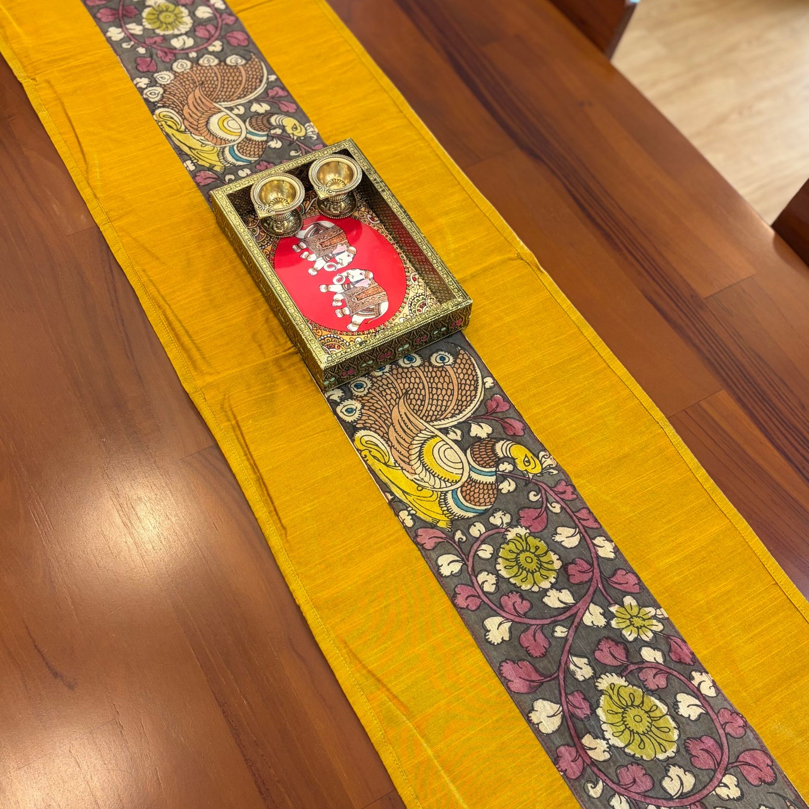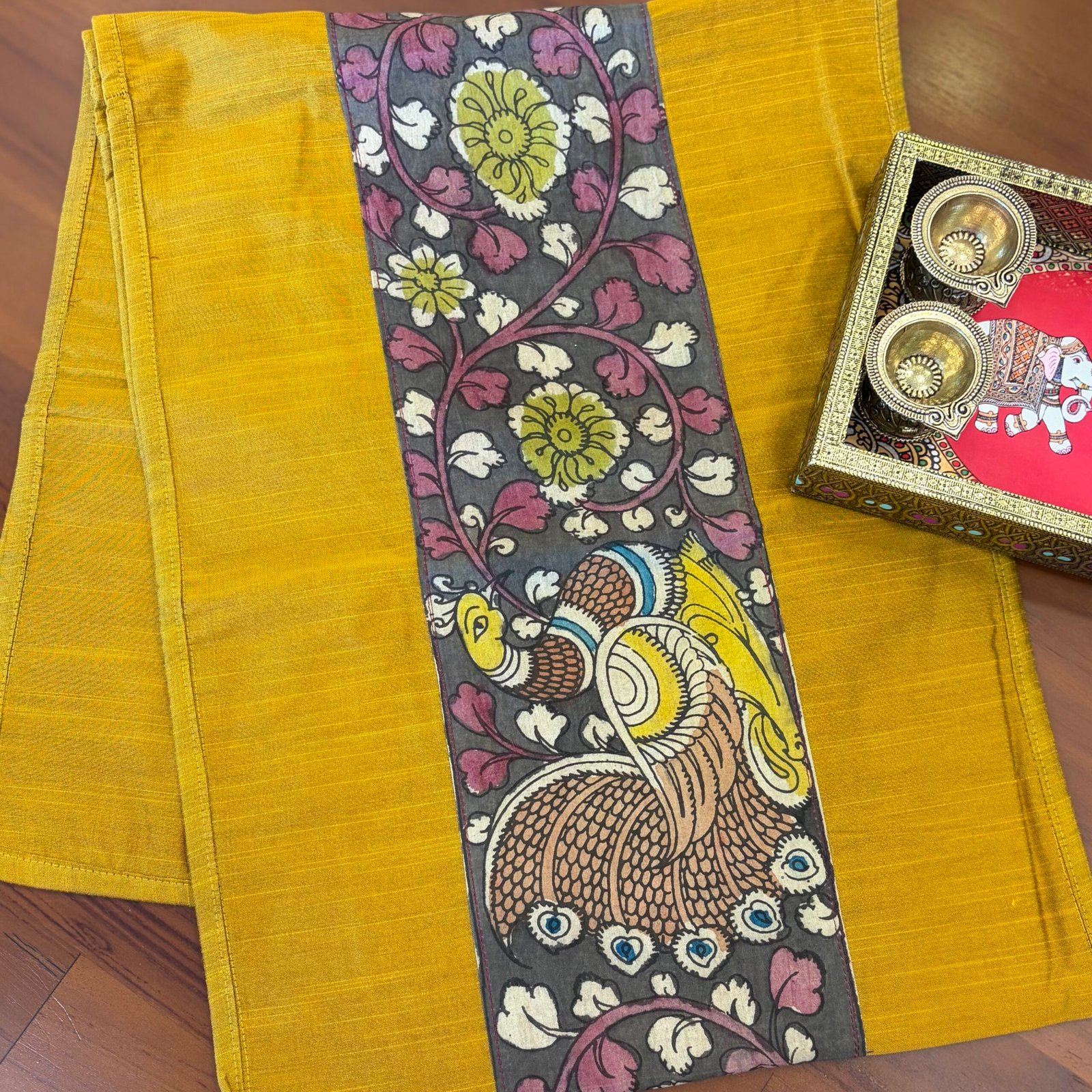 Kalamkari Design Table Runner (Mustard & Grey Patch)