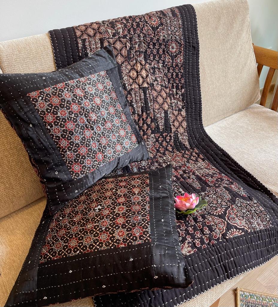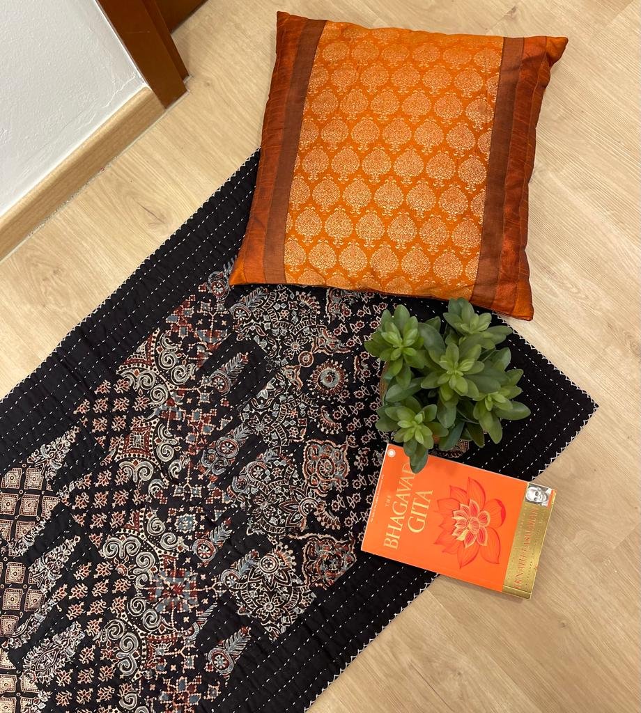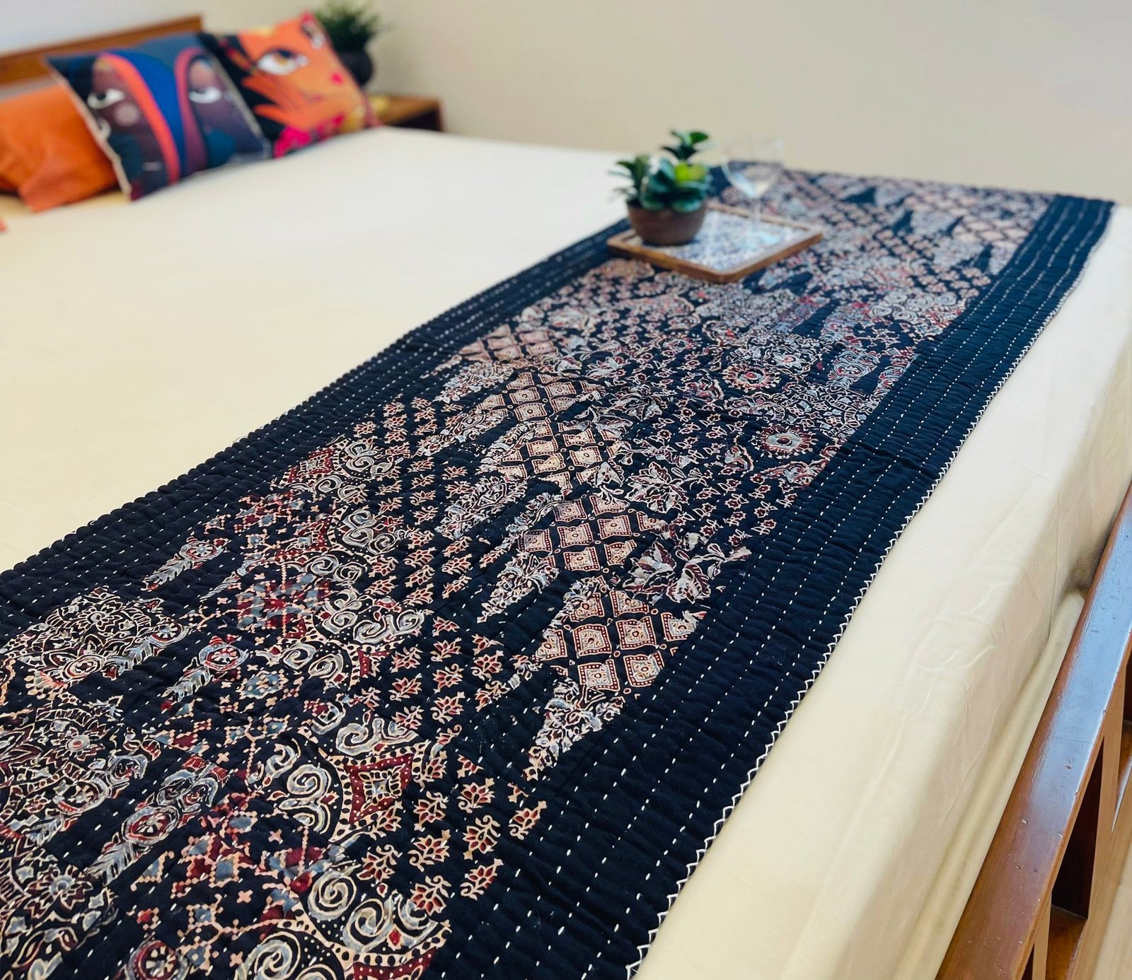 Material: Cotton Ajrakh kanthawork reversible runners.