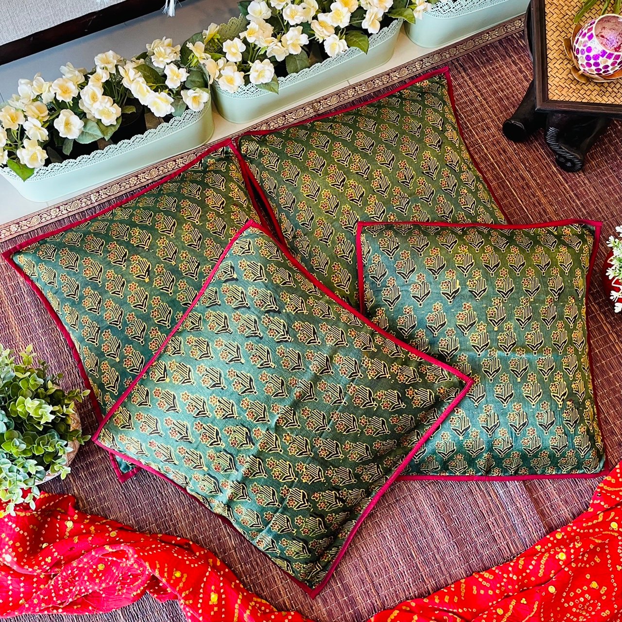 Mashru Silk Cushion Covers (Set of 4, Mali8)