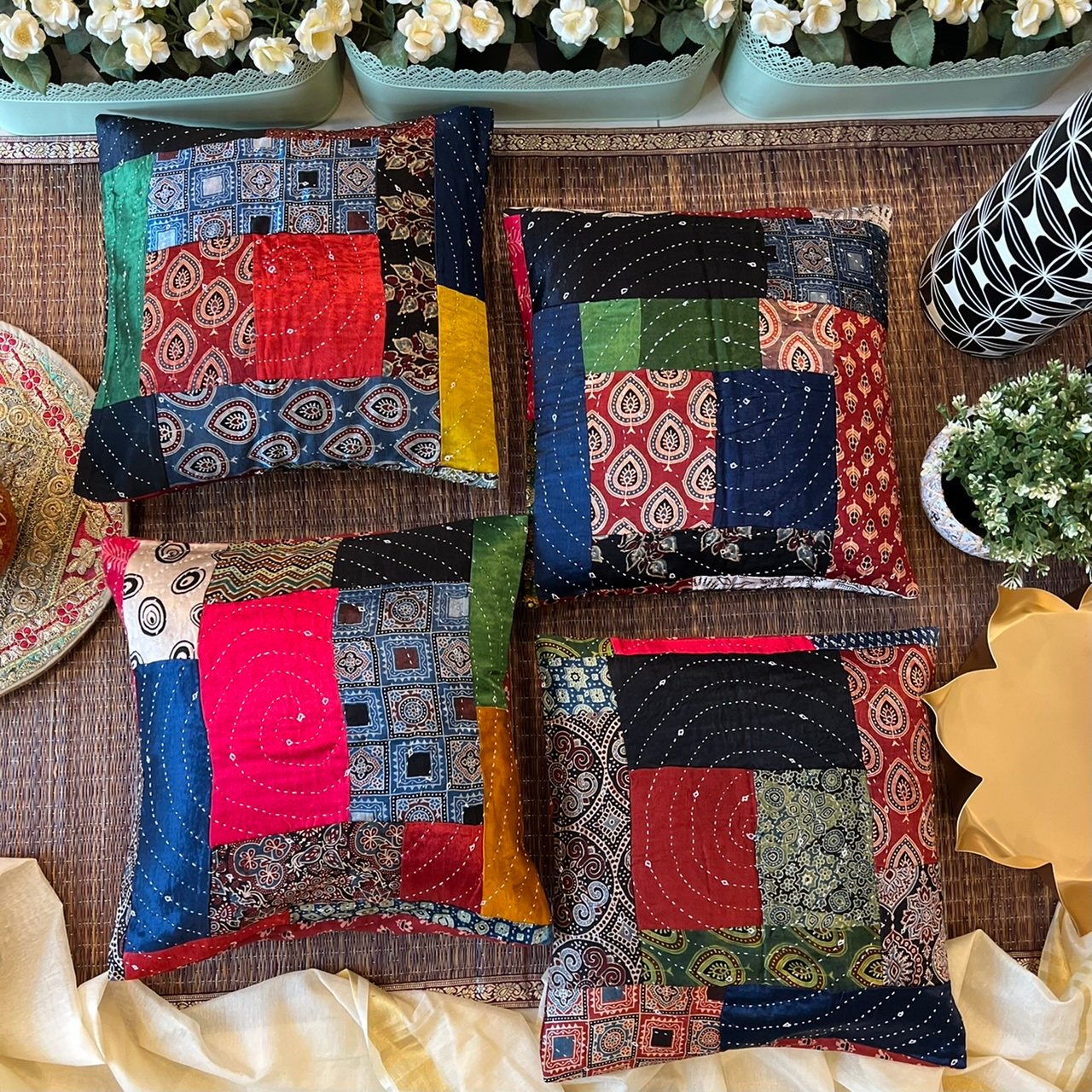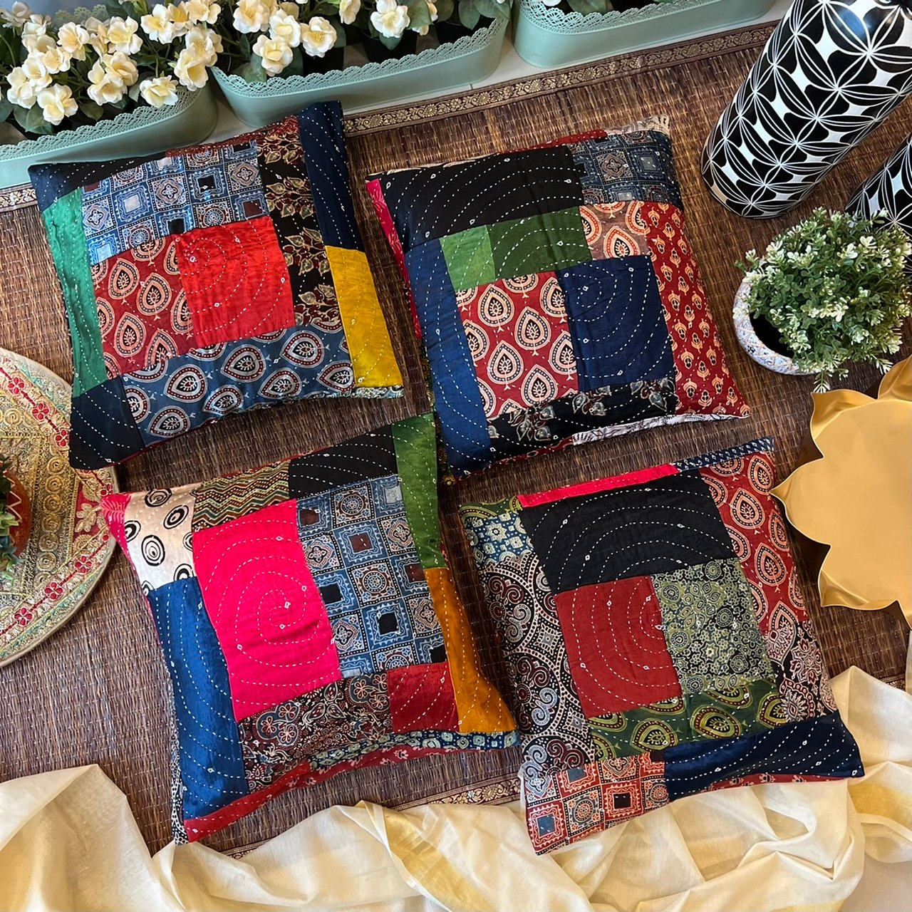 Mashru Silk Cushion Covers (Set of 4, Set E)