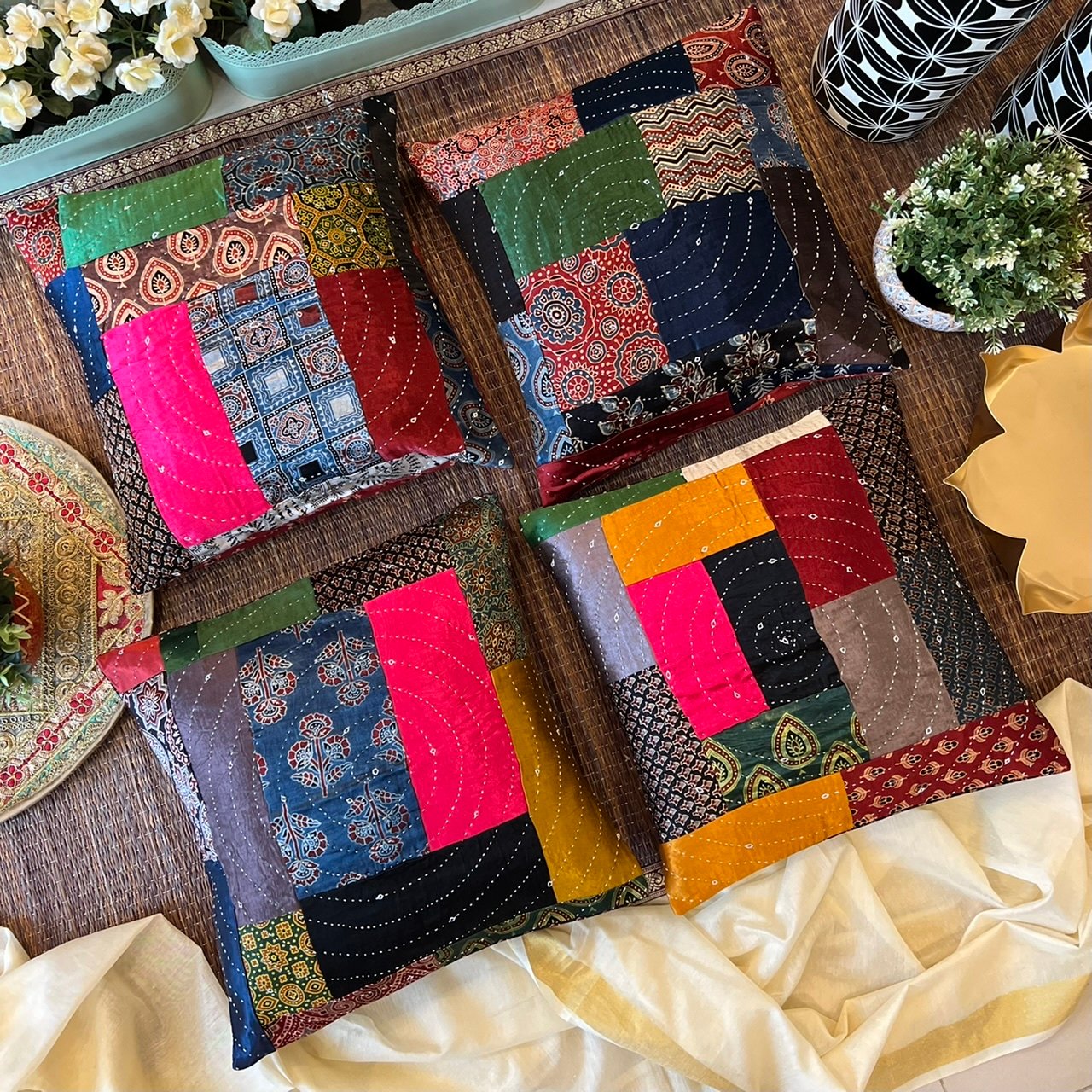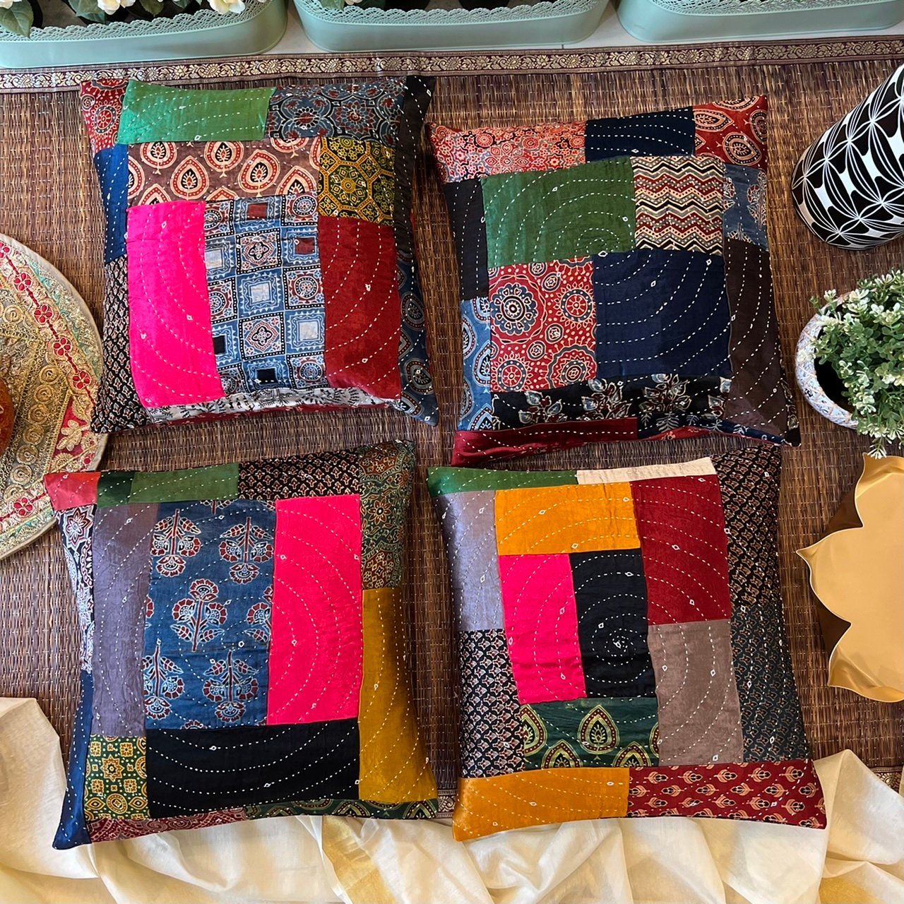 Mashru Silk Cushion Covers (Set of 4, Set F)