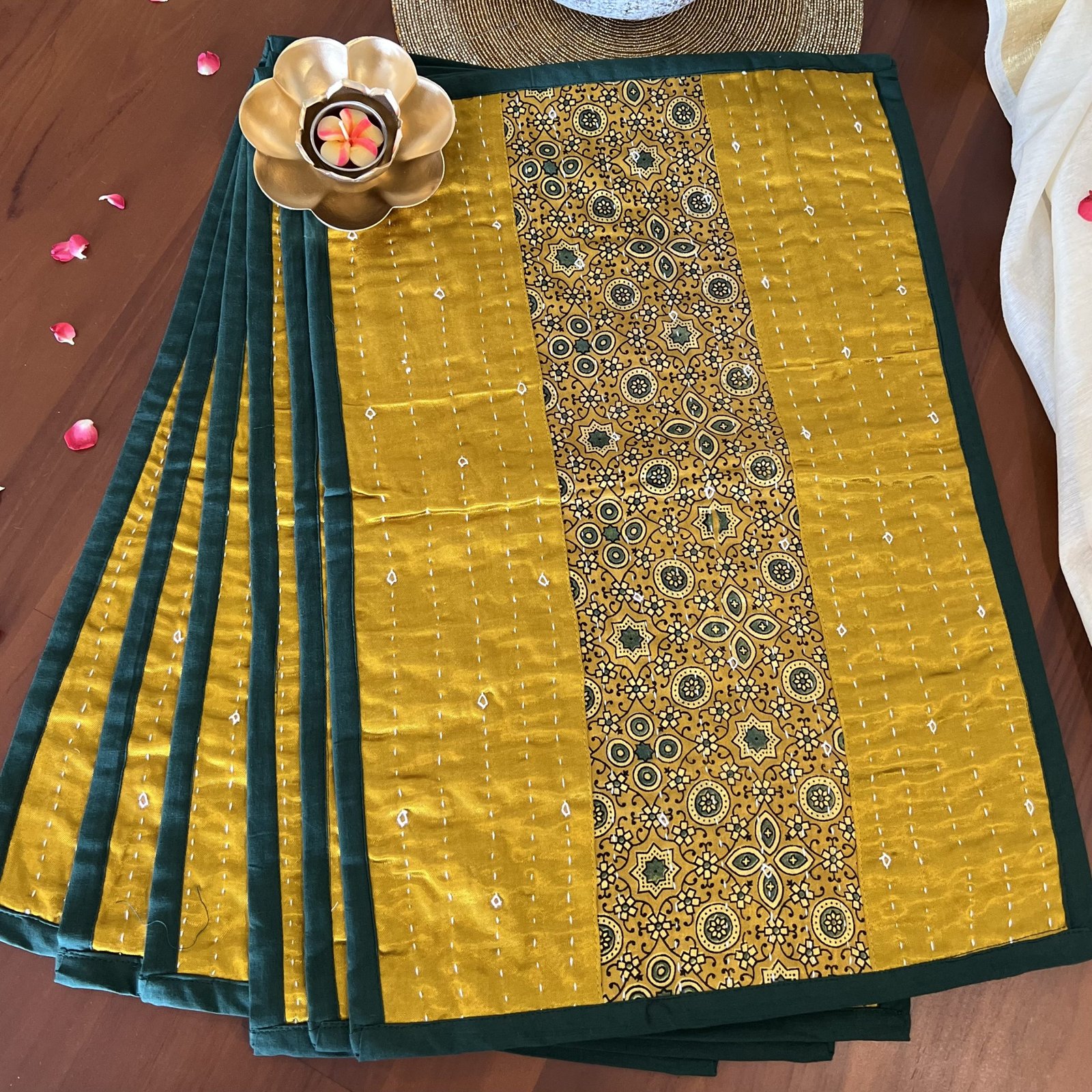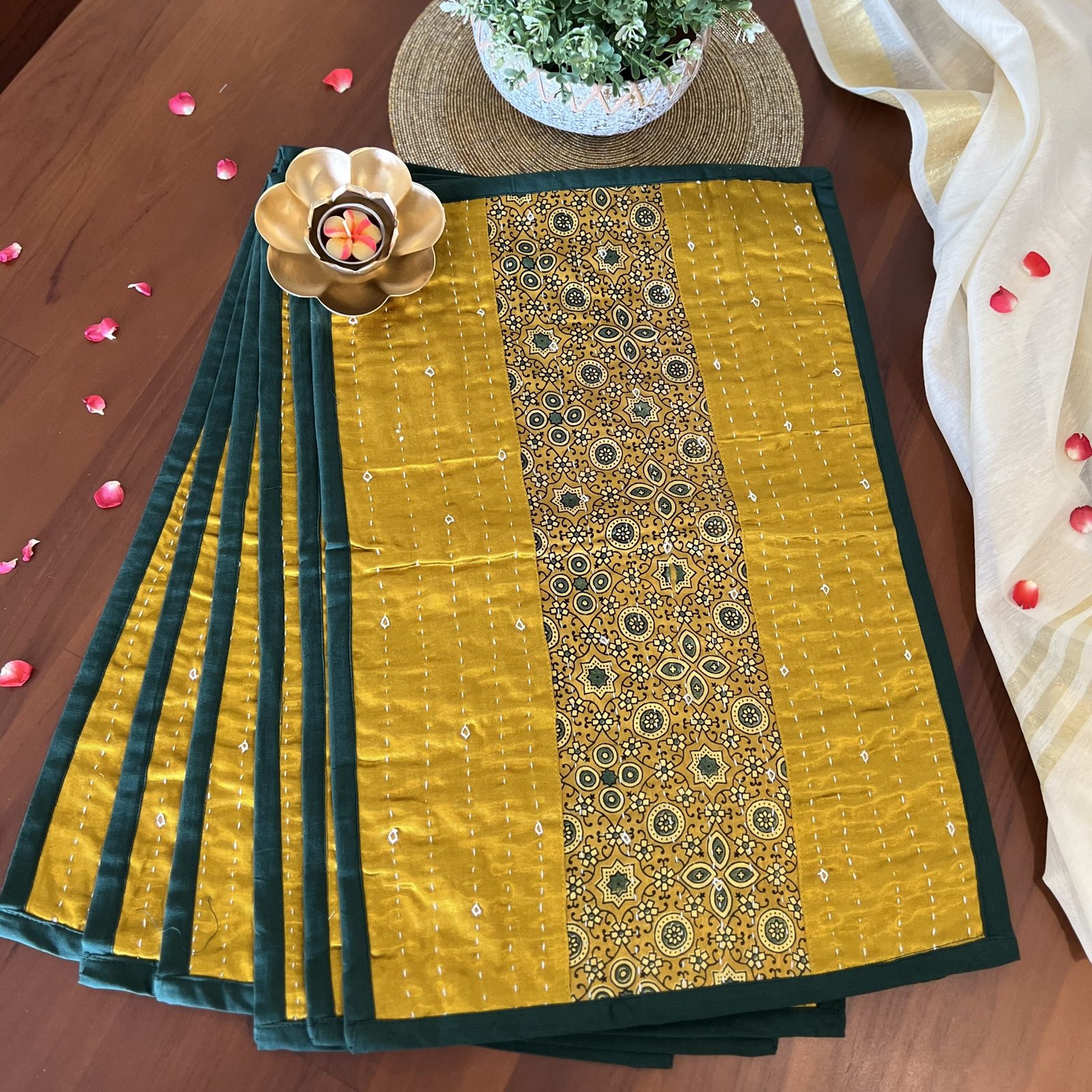 Mashru Silk Placemats (Set of 6, Mustard2)
