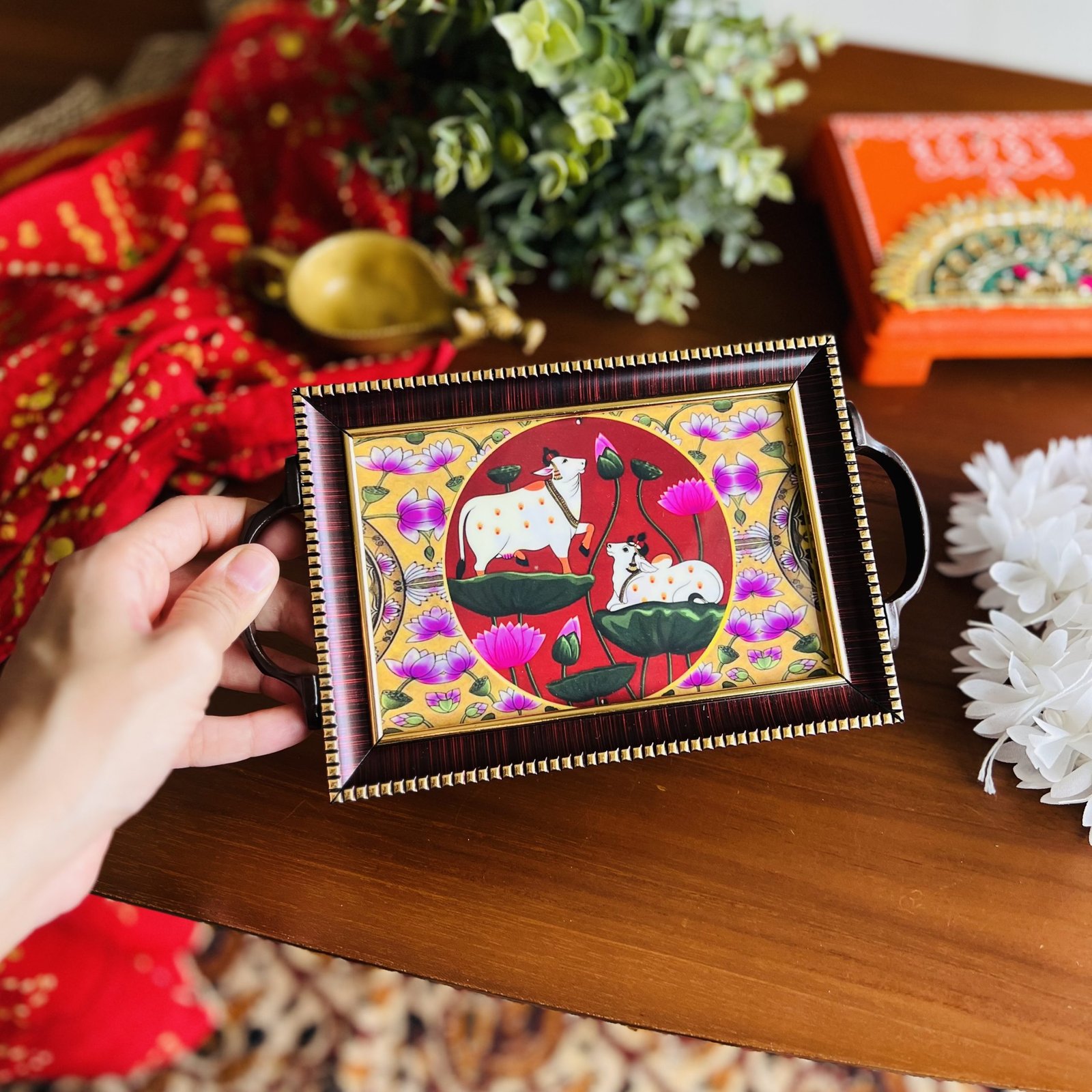 - 1 pichwai design decorative pooja tray – 10×8 inches