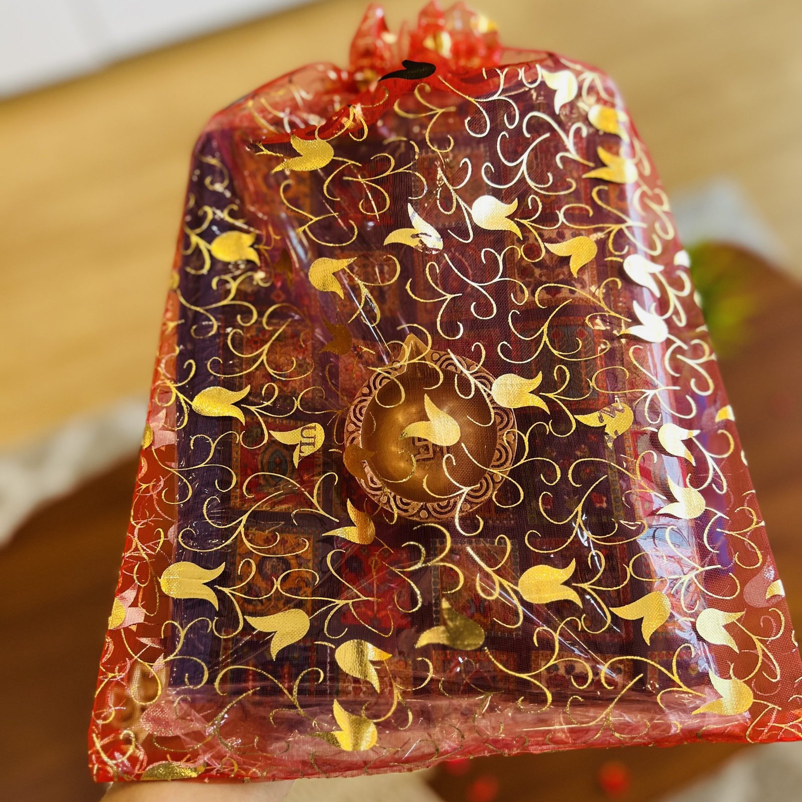Printed Silk Table Runner & Brass Diya Gift St (B3)