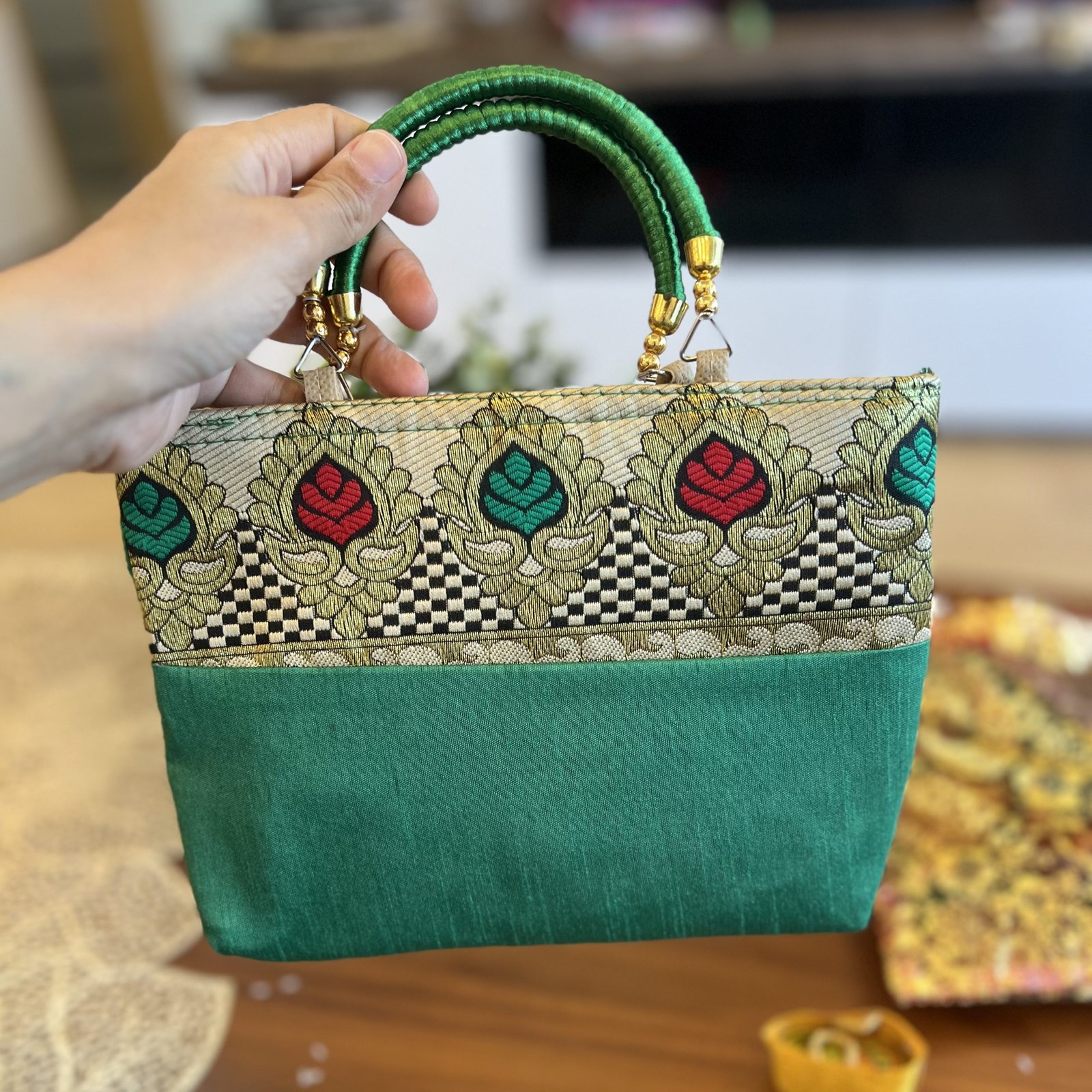 Purse & Haldi Kumkum Gift Set (Green Woven)
