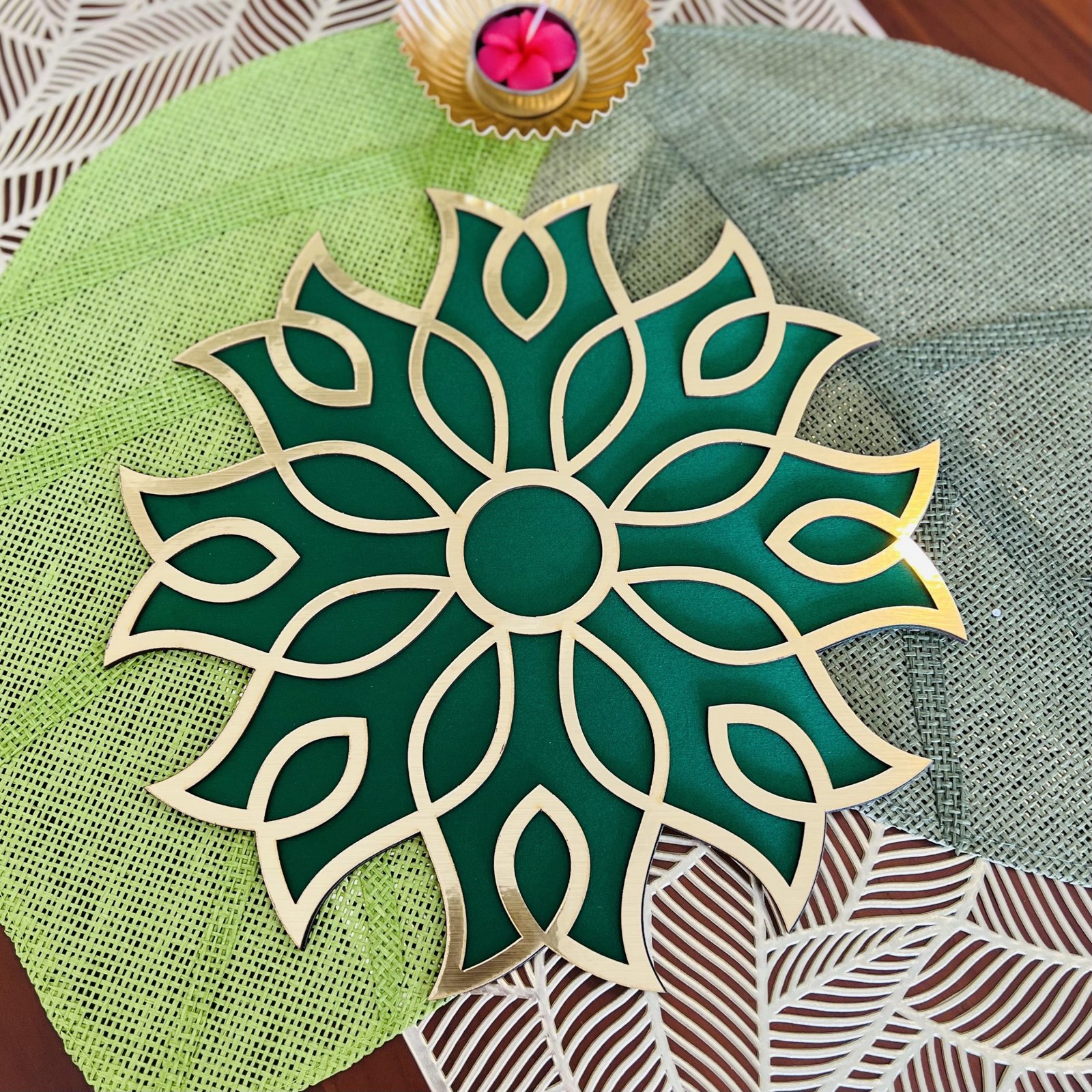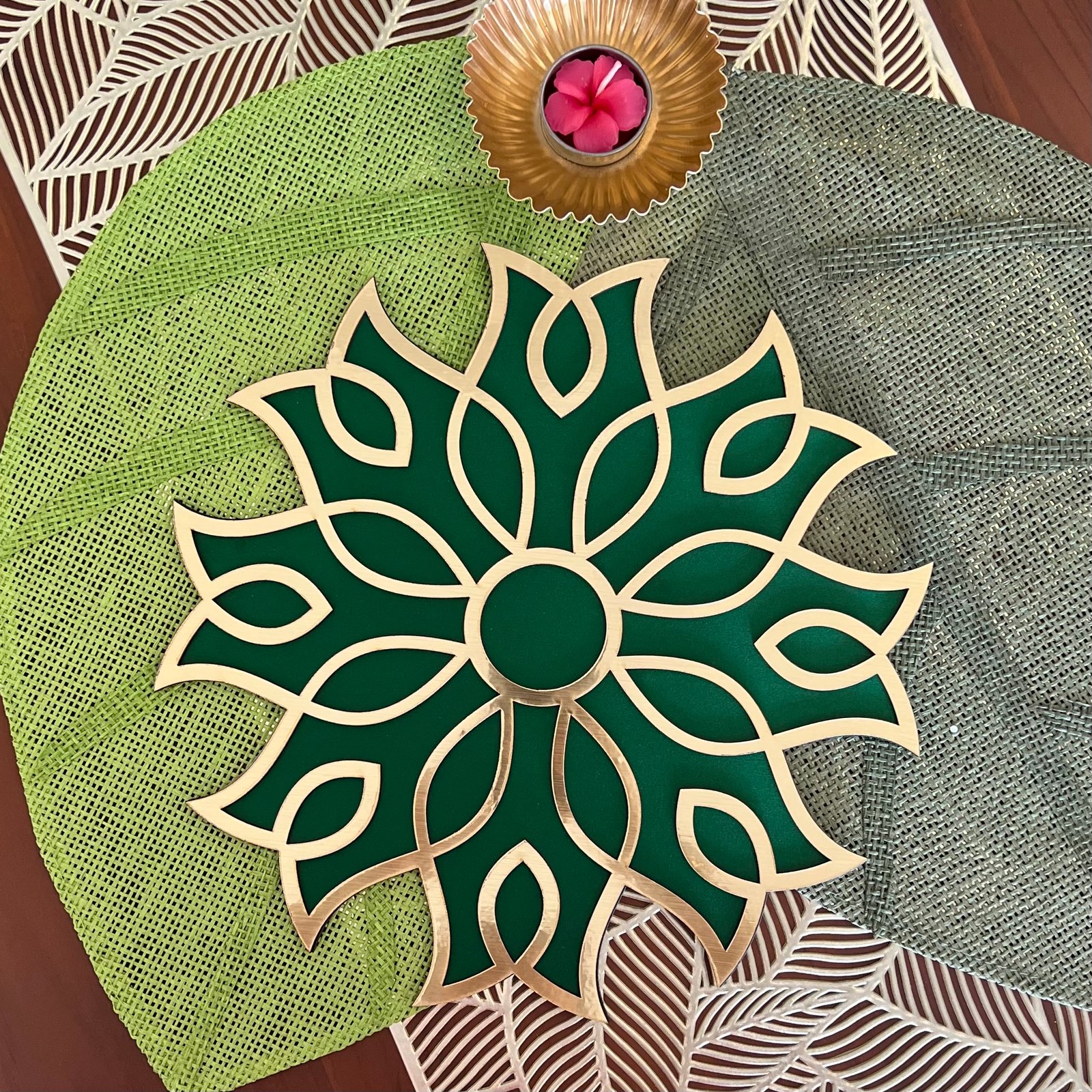 Rangoli Mat (Green Flower)