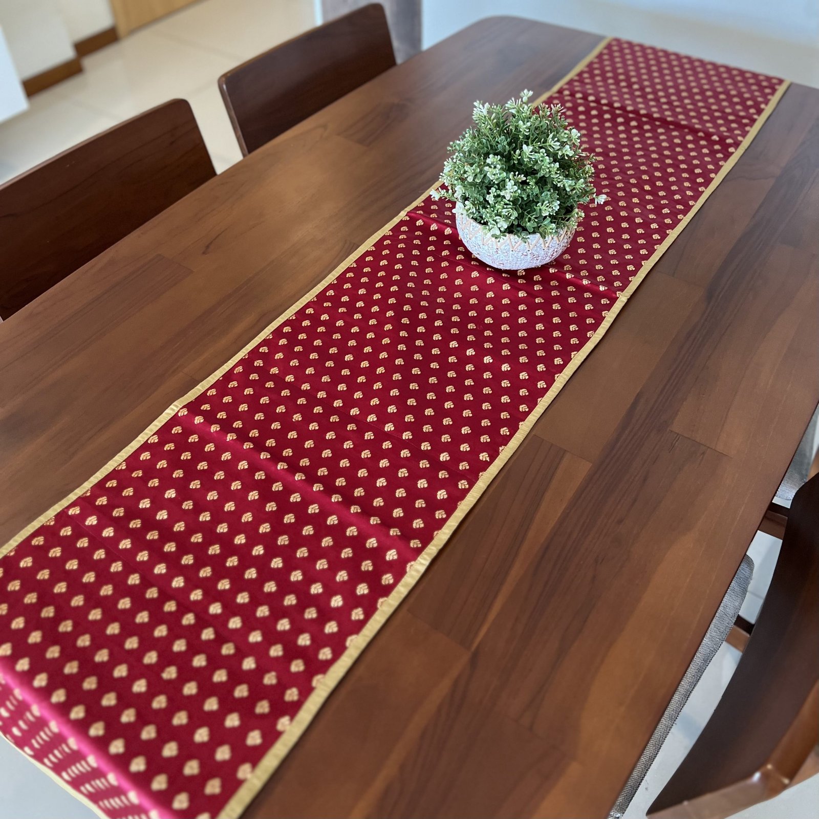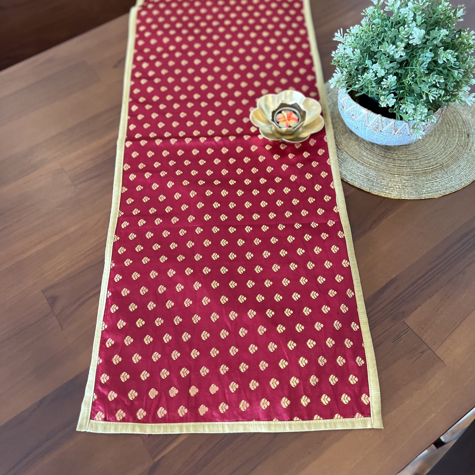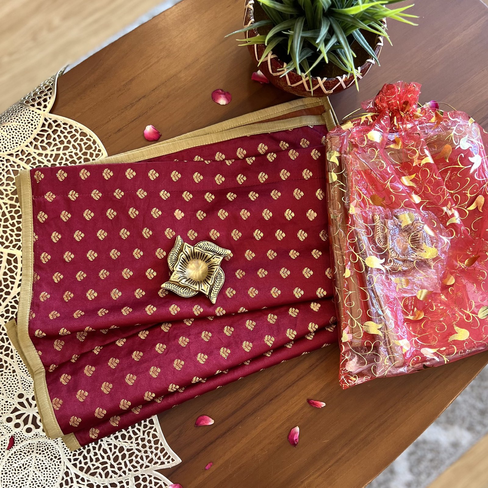 Silk Table Runner & Brass Diya Gift Set (S3)