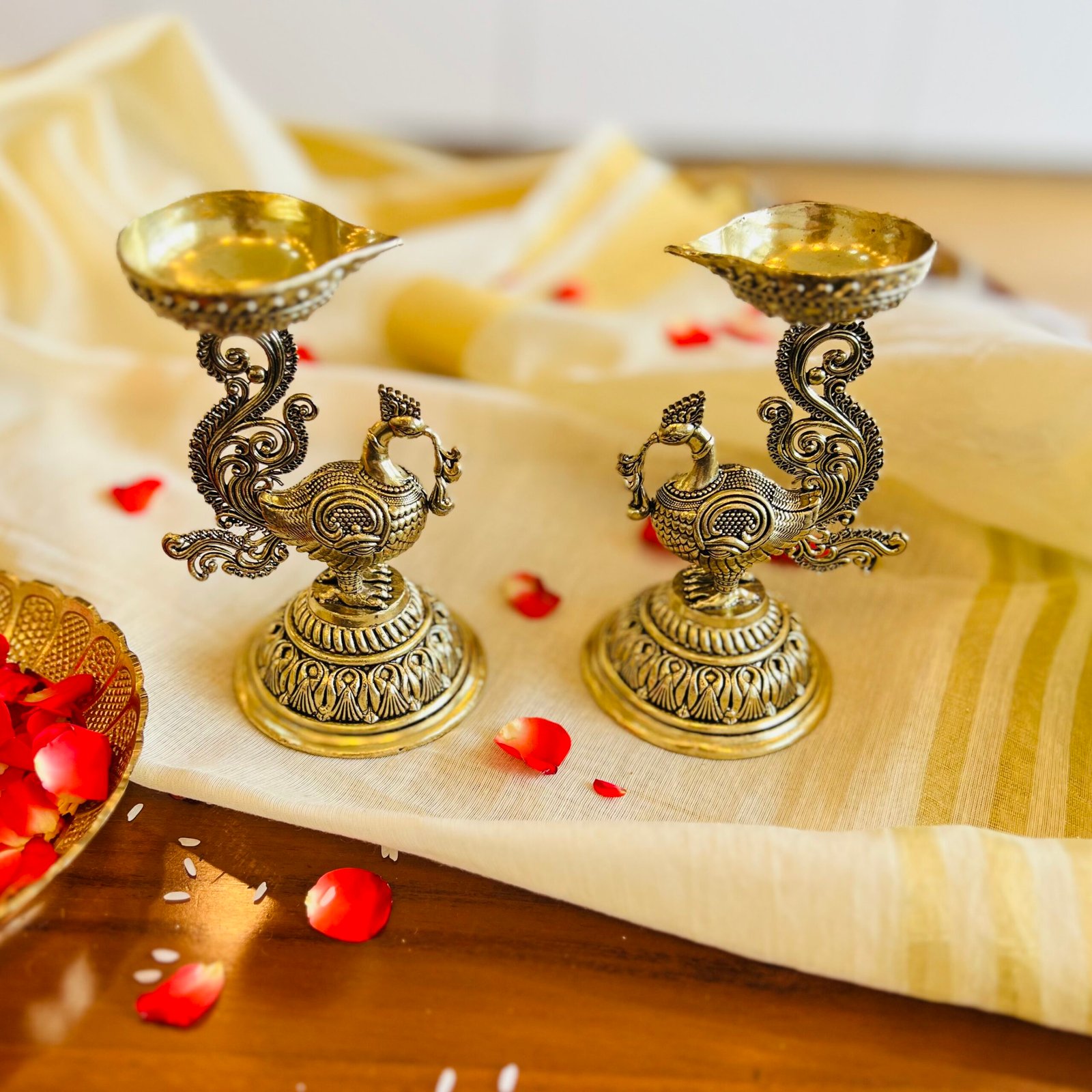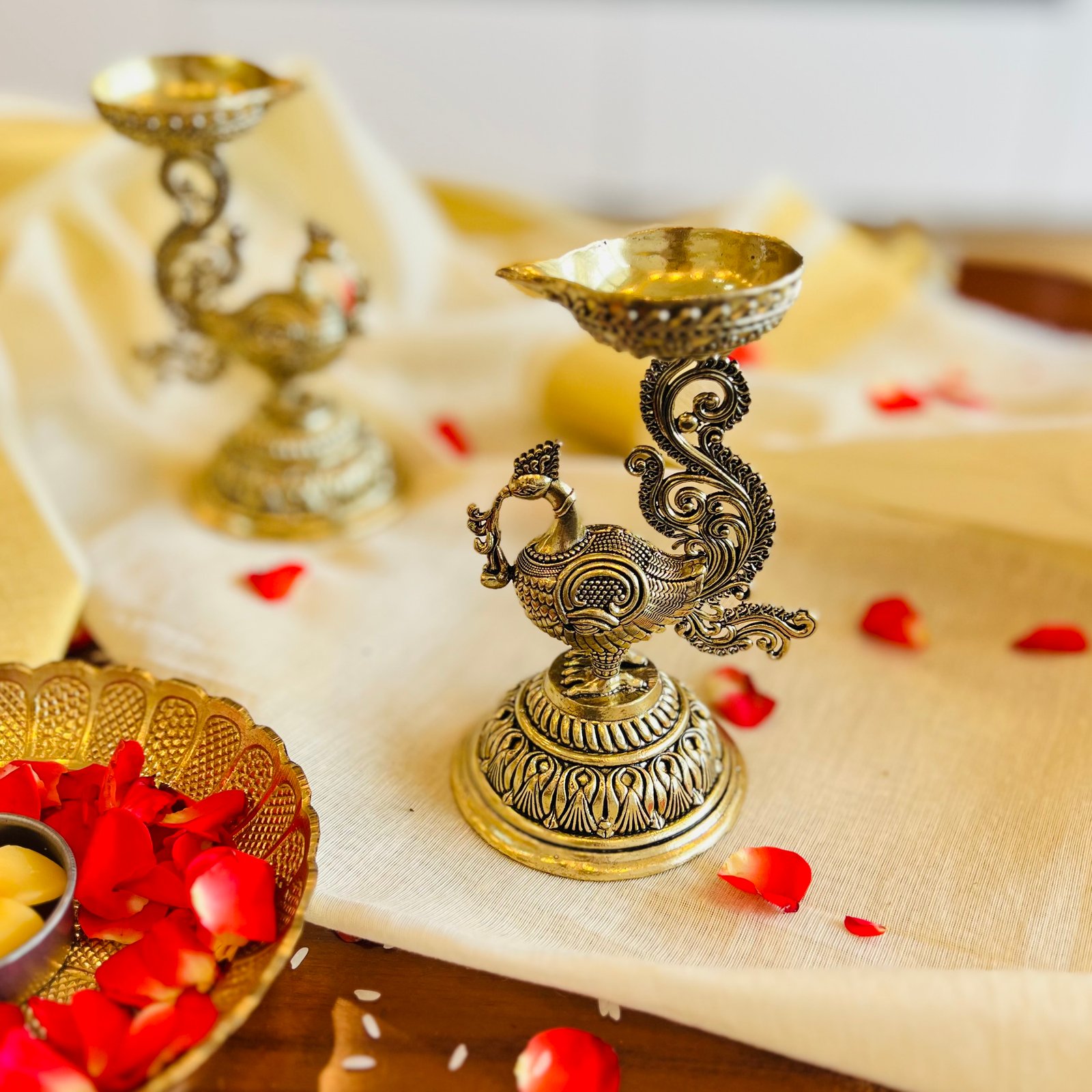 Superfine Lightweight Brass Peacock Diya Lamp (BD 2)