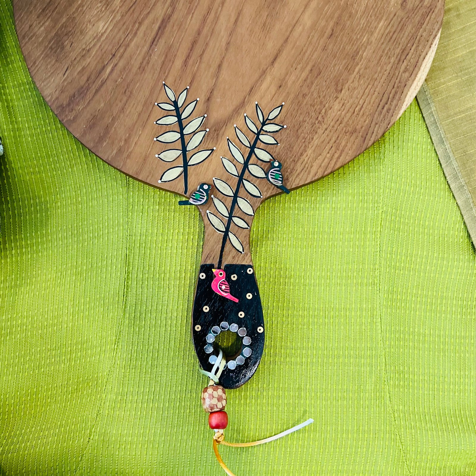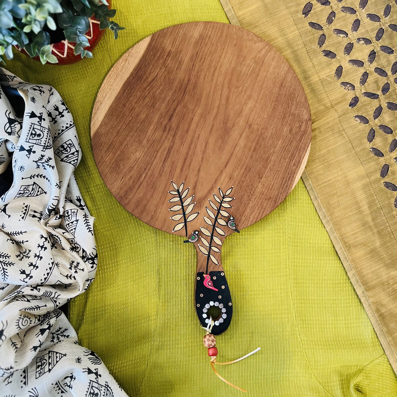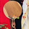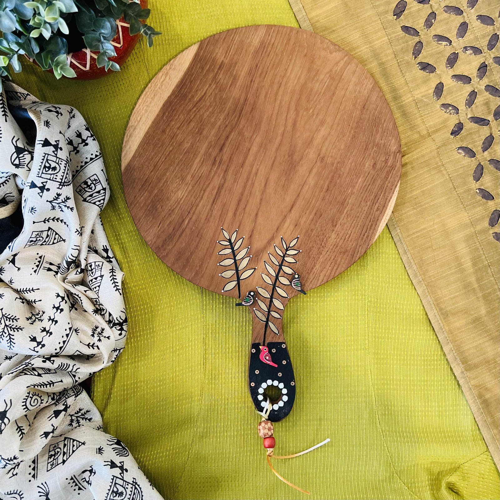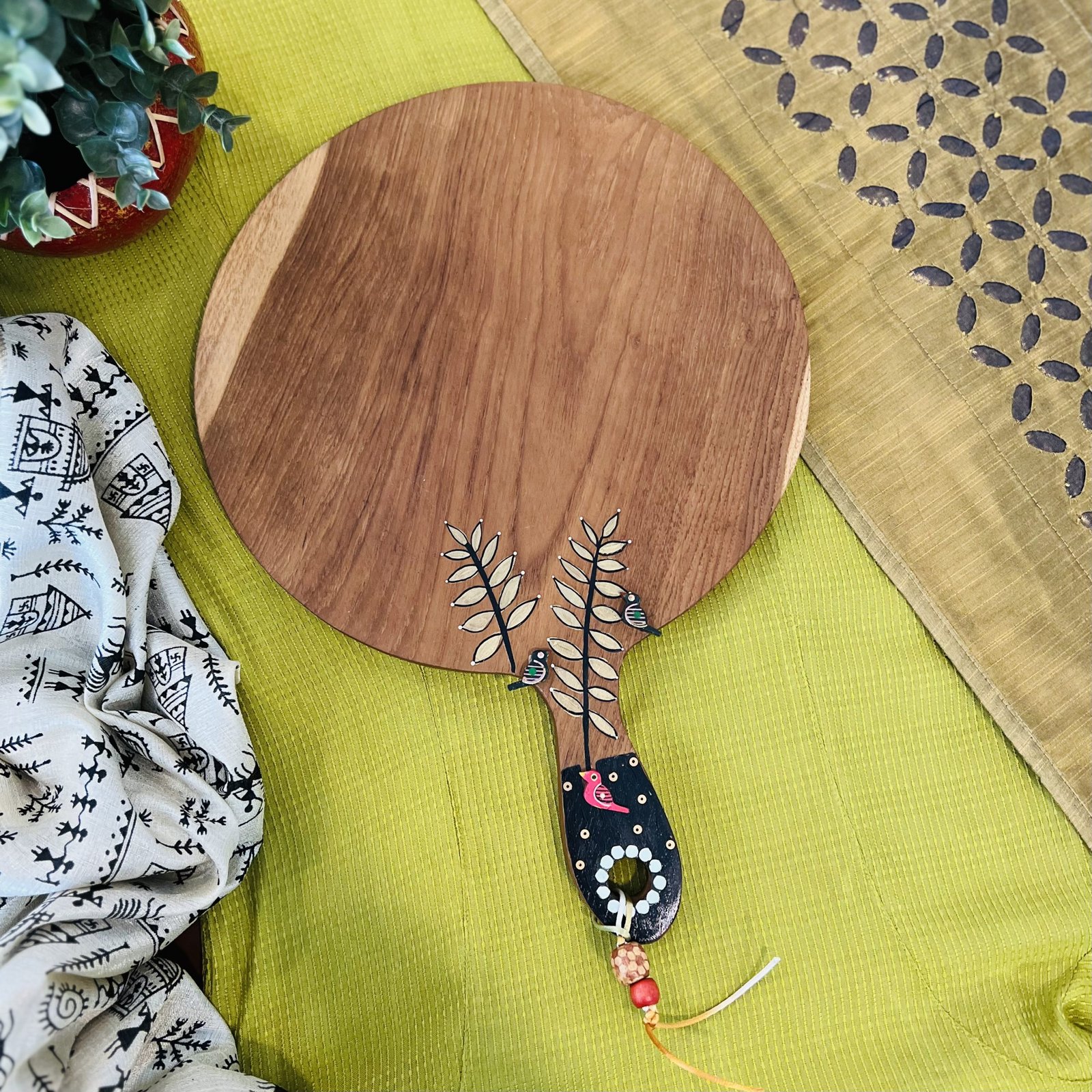 Teak Wood Platter (Round, Pink and Black Bird Design)