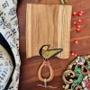 Teak Wood Platter (Small Rectangle, Black Leaf)