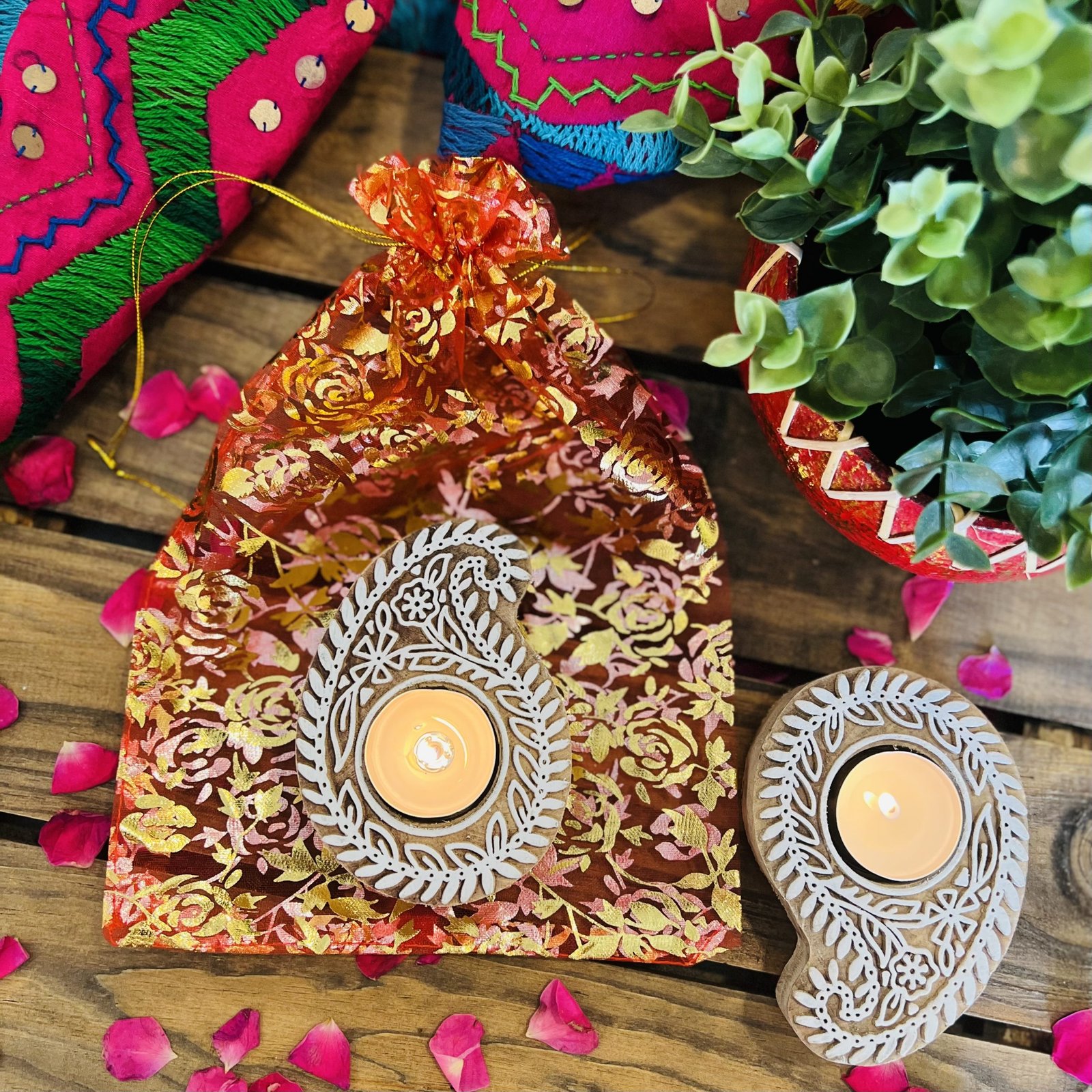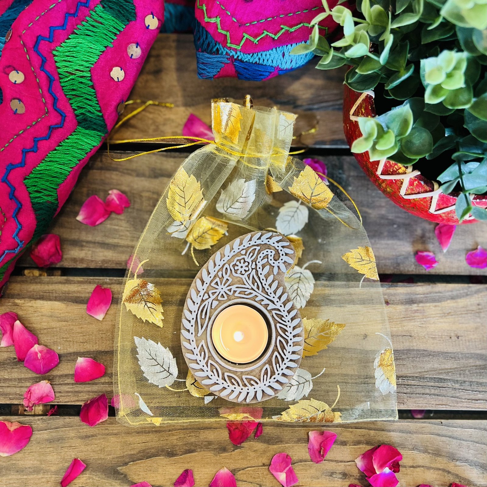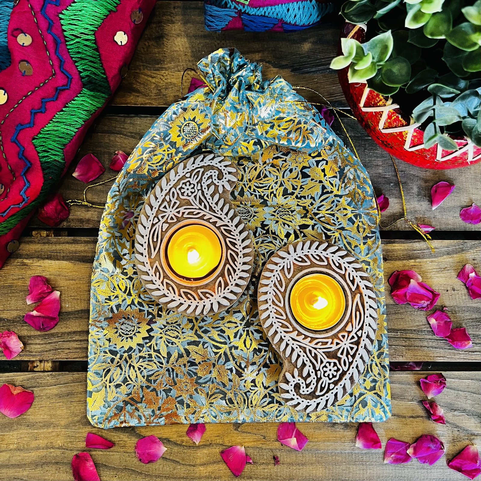 Includes: Only wooden block, Potli bag sold separately. Does not include the wax tealight.