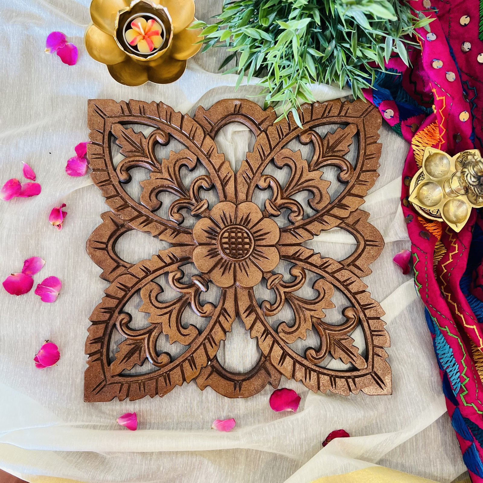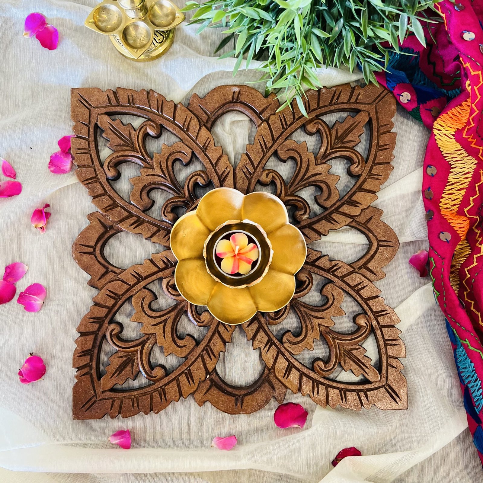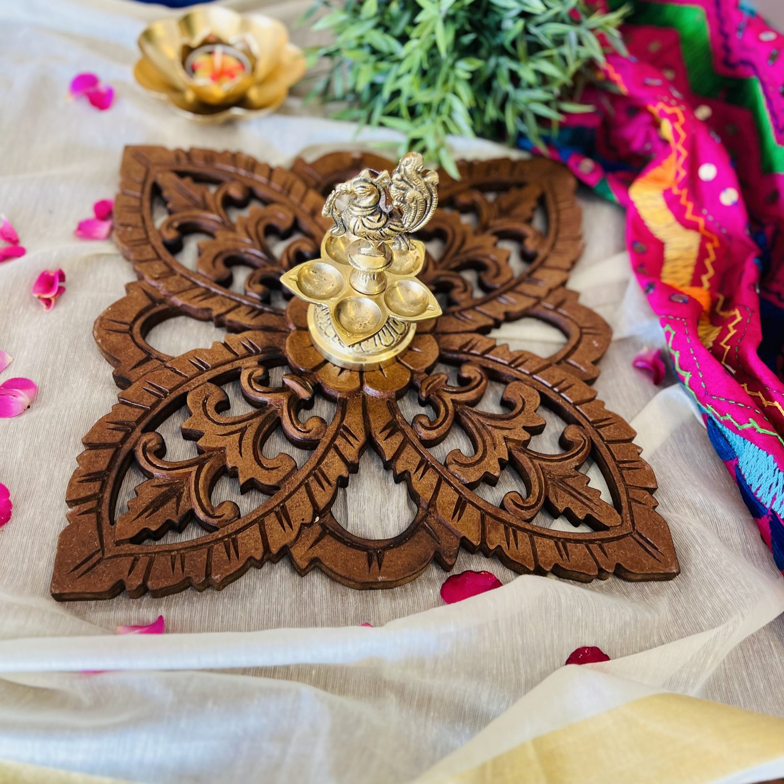 Includes: Wooden pallet only, diya and rest of the items are not included